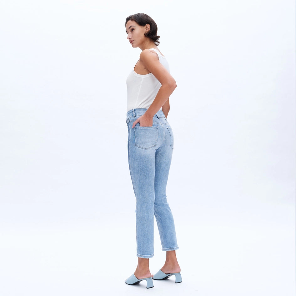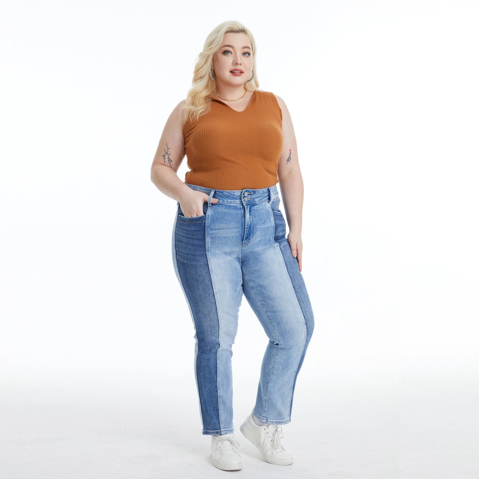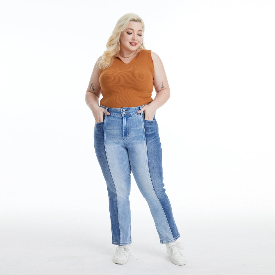 Mid Rise Straight Jeans(Finished Hem,Two Tones) DUOTONE