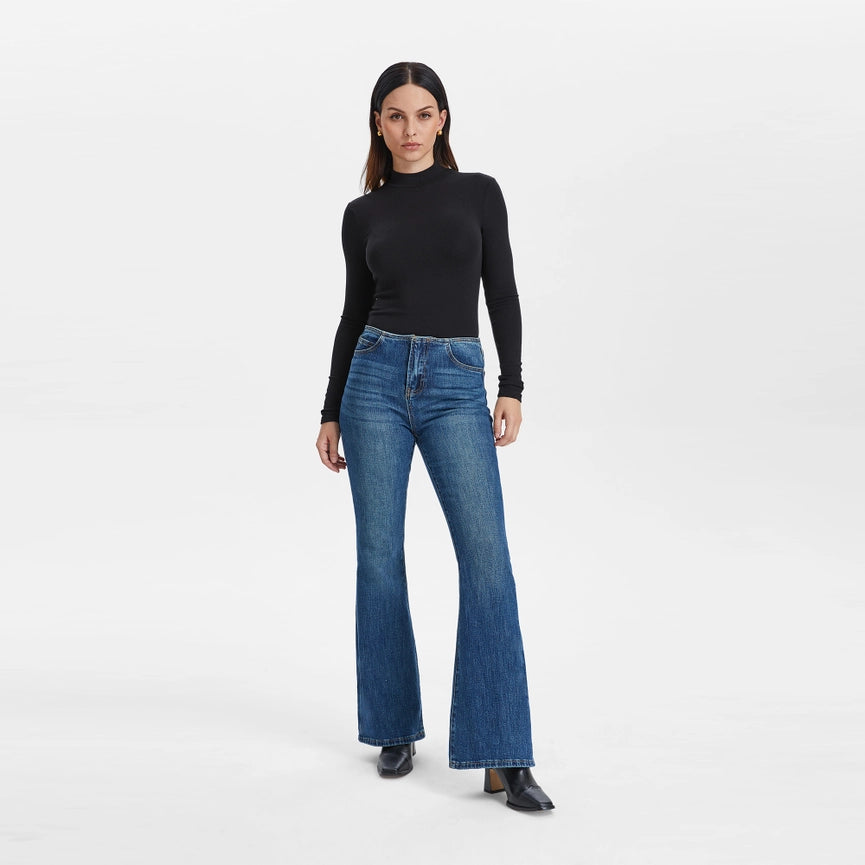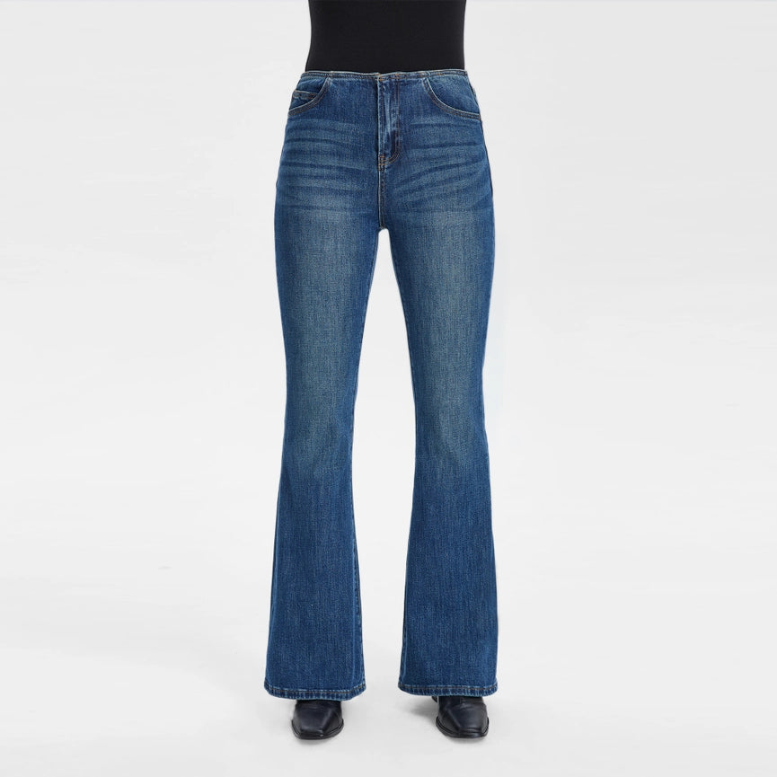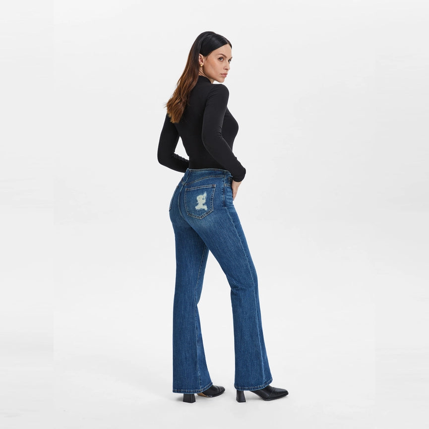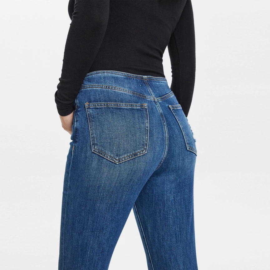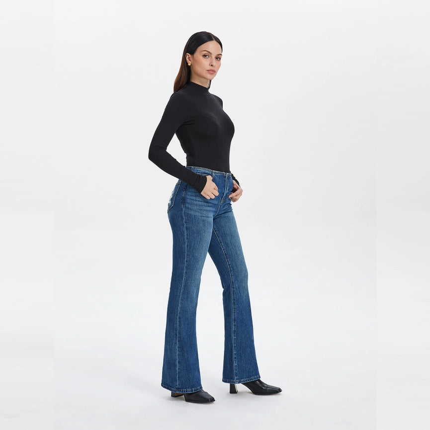Mid Rise Waistless Bootcut Jeans with Finished Hem NAVY