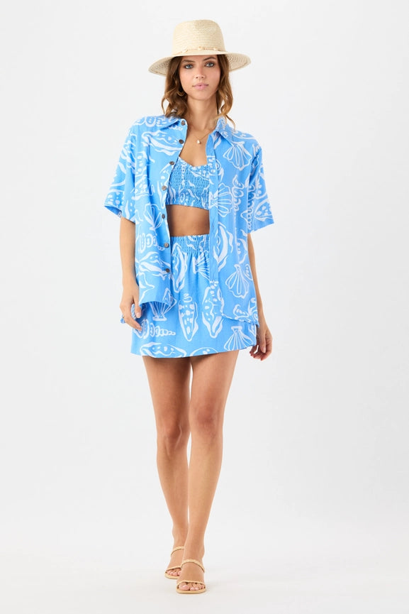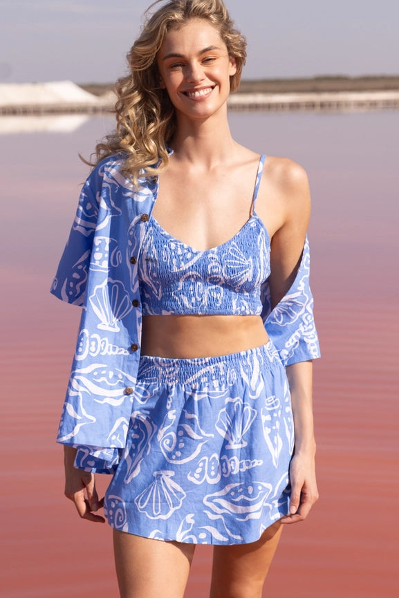 Expertly designed for versatility and style, the Minnow Top features a stretchy smocked body for a flattering fit. Its adjustable spaghetti straps allow for a customizable fit, while the cropped length pairs perfectly with a variety of bottoms. Made with a blend of cotton and linen, this top is both comfortable and easy to care for. Ideal for any occasion, from casual brunches to evening gatherings. Made in Indonesia.