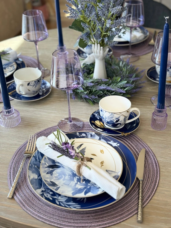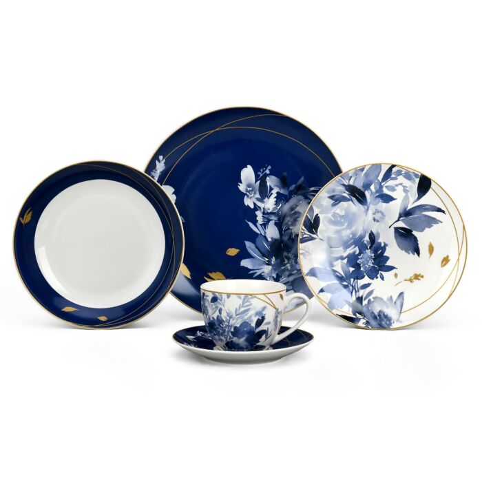 Experience elegance and practicality with the Mizuki New Bone China Dinnerware Set. This 20-piece set includes dinner plates, deep plates, dessert plates, cups, and saucers for 4 people. Made from extra-strong porcelain, it is both dishwasher and microwave-safe. The stunning design features a blindingly-white background and rich dark blue accents, making each piece unique. Perfect for everyday use, this set is the epitome of attention to detail and impeccable execution.