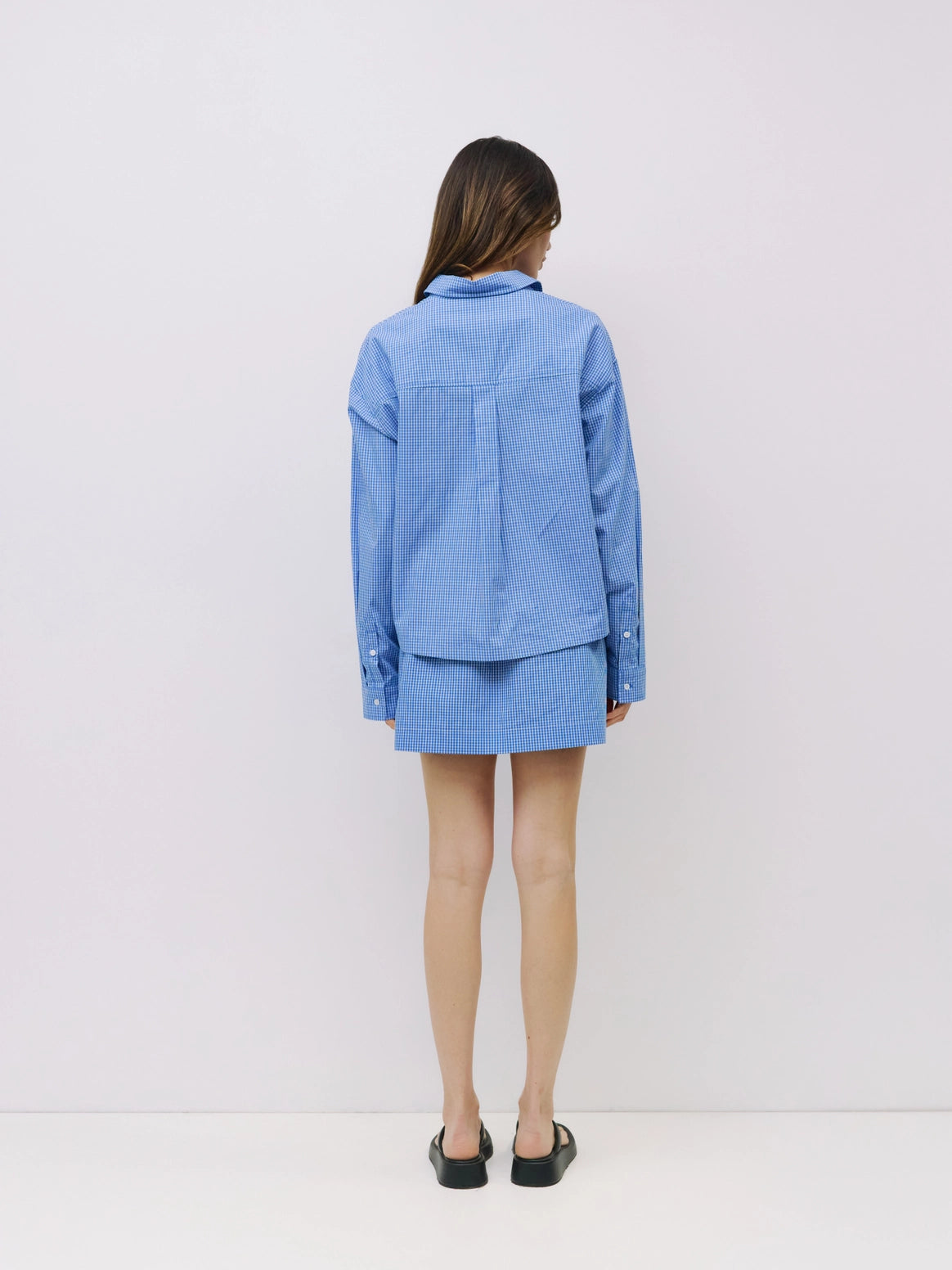 The Gates Skirt is a mini skirt made from breathable plaid fabric, perfect for warm weather. It features an elastic waistband and a front button-down placket, blending casual ease with contemporary style. Made from 100% cotton, it ensures comfort and durability.