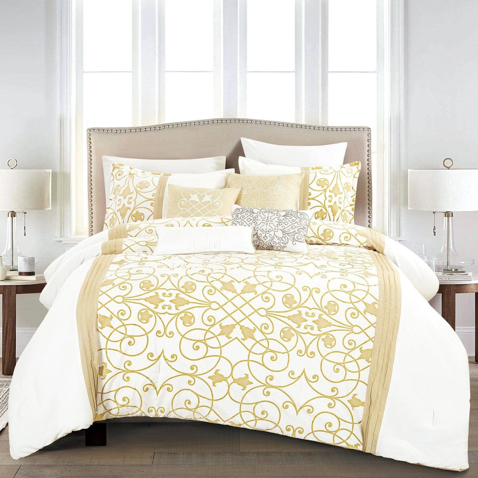 Mora Contemporary White and Gold Comforter Set - 7 Piece Set