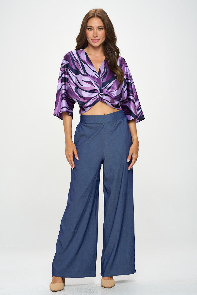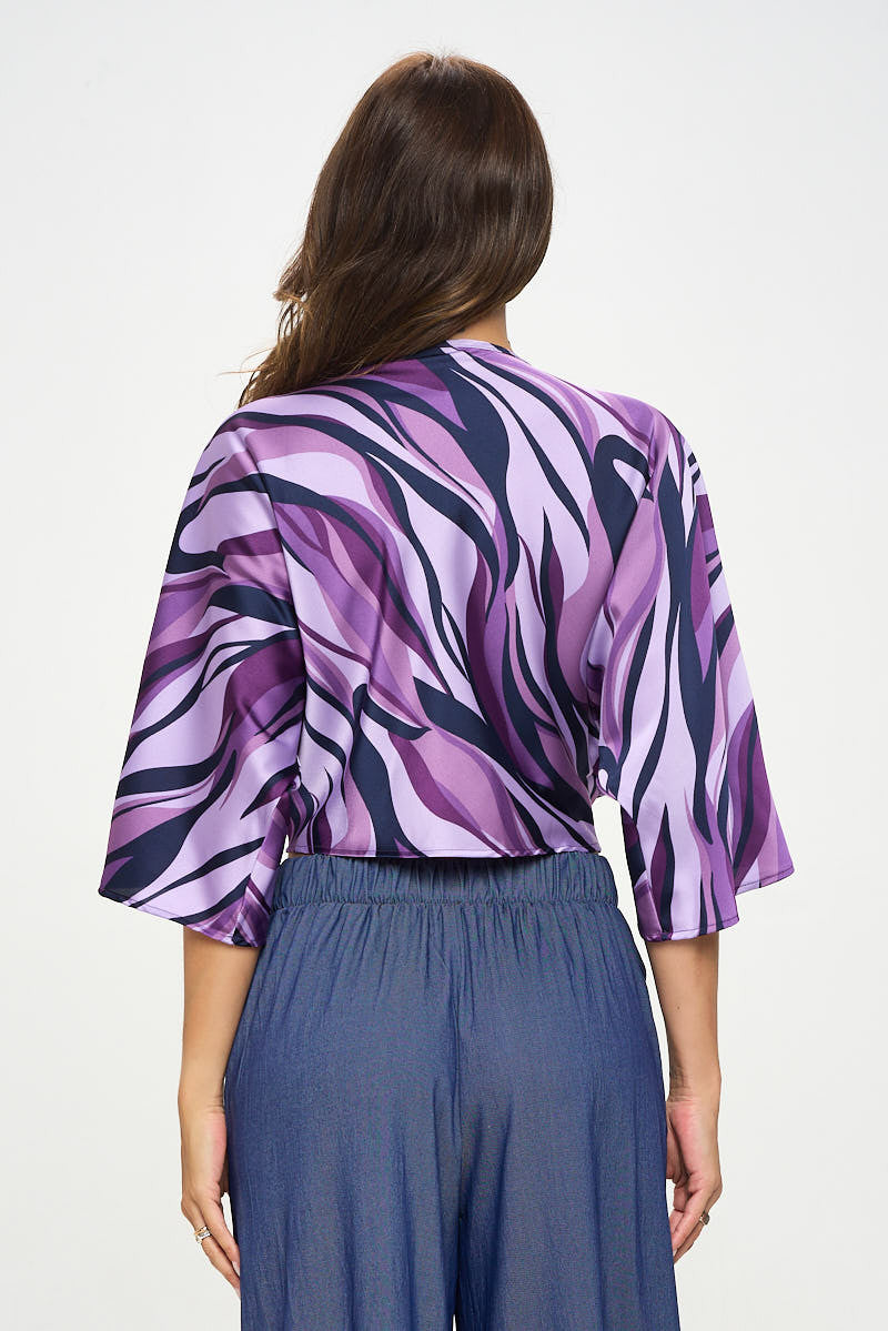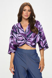 Multi Print Satin Mid Sleeve Top with Front Twist-New Arrival-Reneecollection-Small-PURPLE-Urbanheer