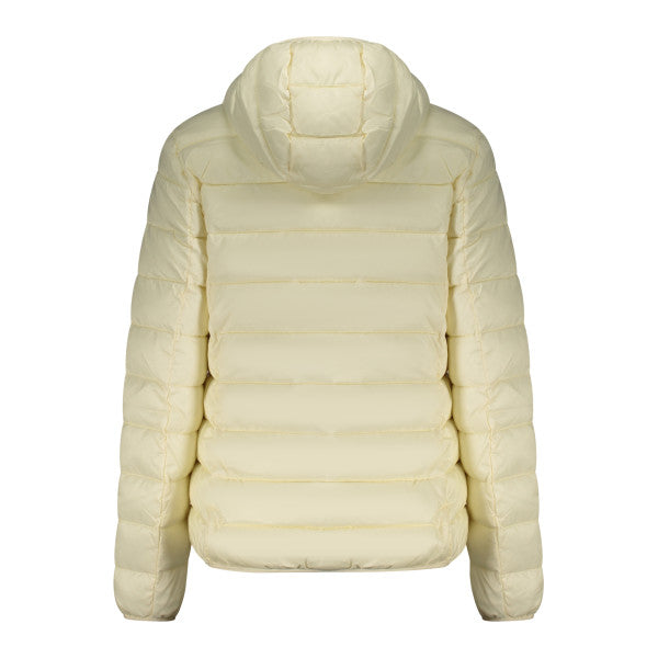This long-sleeve jacket features a hood, two external pockets, and two internal pockets for ample storage. It has a cream-colored lining, a zip closure, and a logo detail. Made from 100% polyamide.