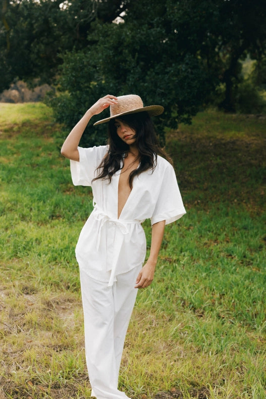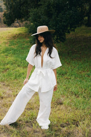 The Paros Pant is the ideal companion for your summer getaway. Made from 100% linen, it boasts a relaxed fit and slightly high-waisted design. Pair it with our matching Kingston Top or a simple white tee for effortless style. Available in sizes XS to XL, with our model wearing an Extra Small.