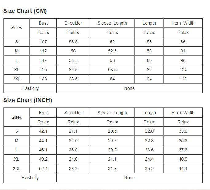 Sizing:
