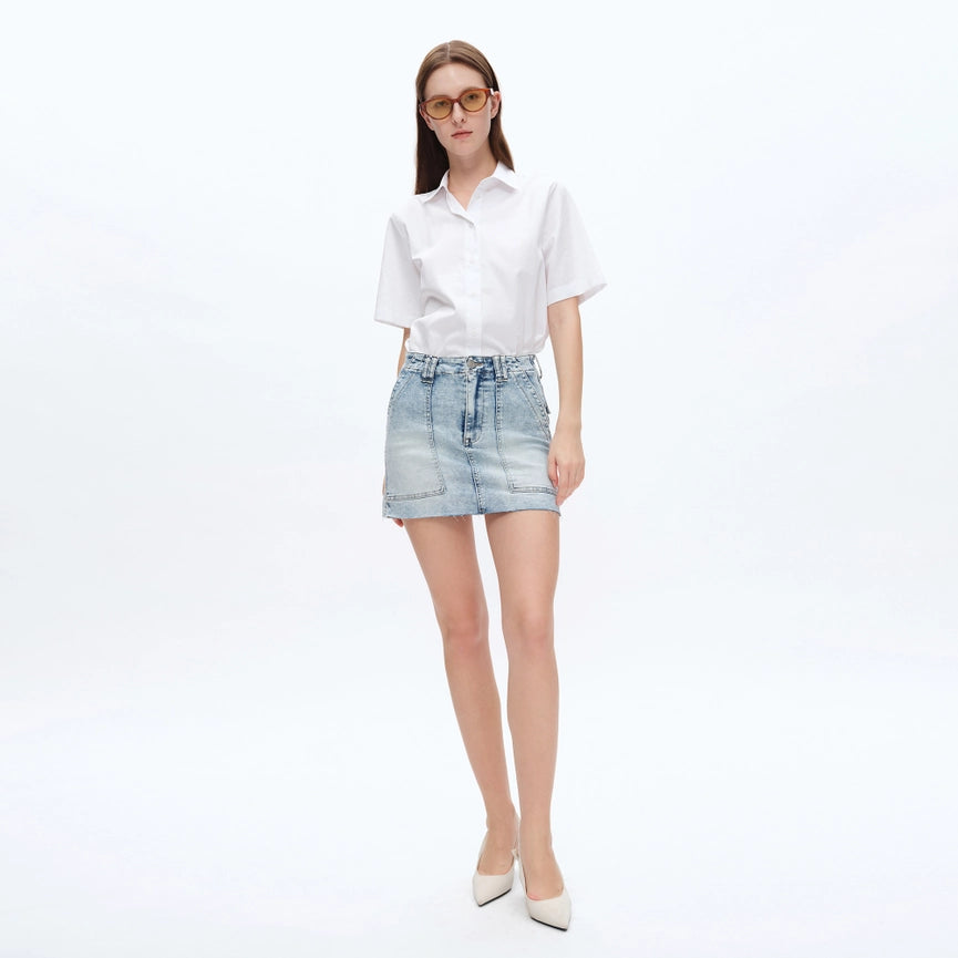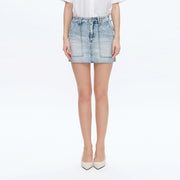 Pencil Denim Mini Skirt with Raw Hem MEDIUM