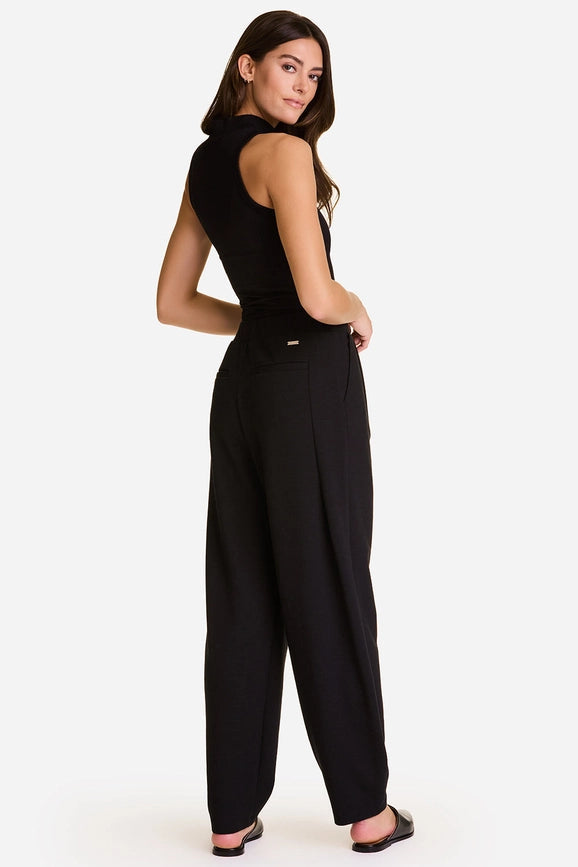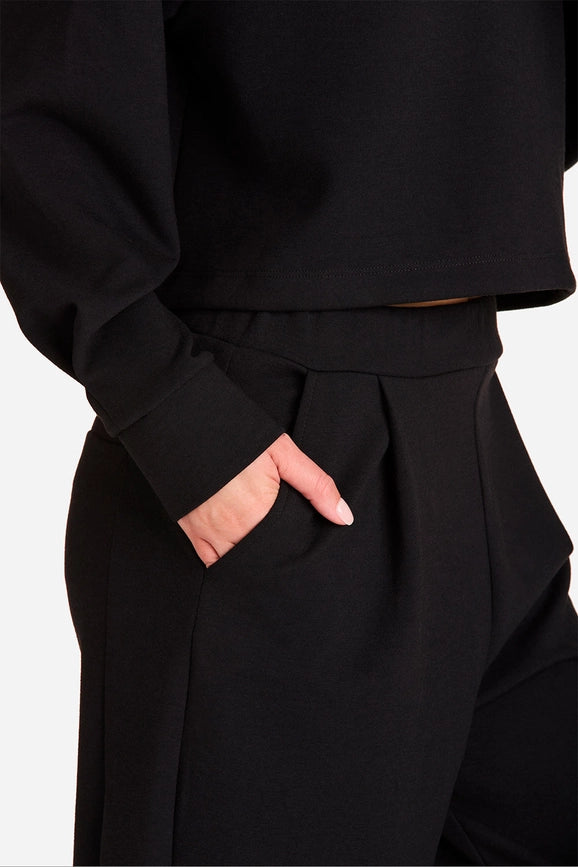 The Phoebe Trouser is a must-have for your loungewear collection. These loose-fit sweats offer both style and comfort, with pleats at the front and back and a brushed matte fabric. Complete the look with the matching Phoebe Mock Neck. Features an elastic waistband, pockets, and a 30 1/4" inseam. Made with a cozy blend of polyester, rayon, and spandex.