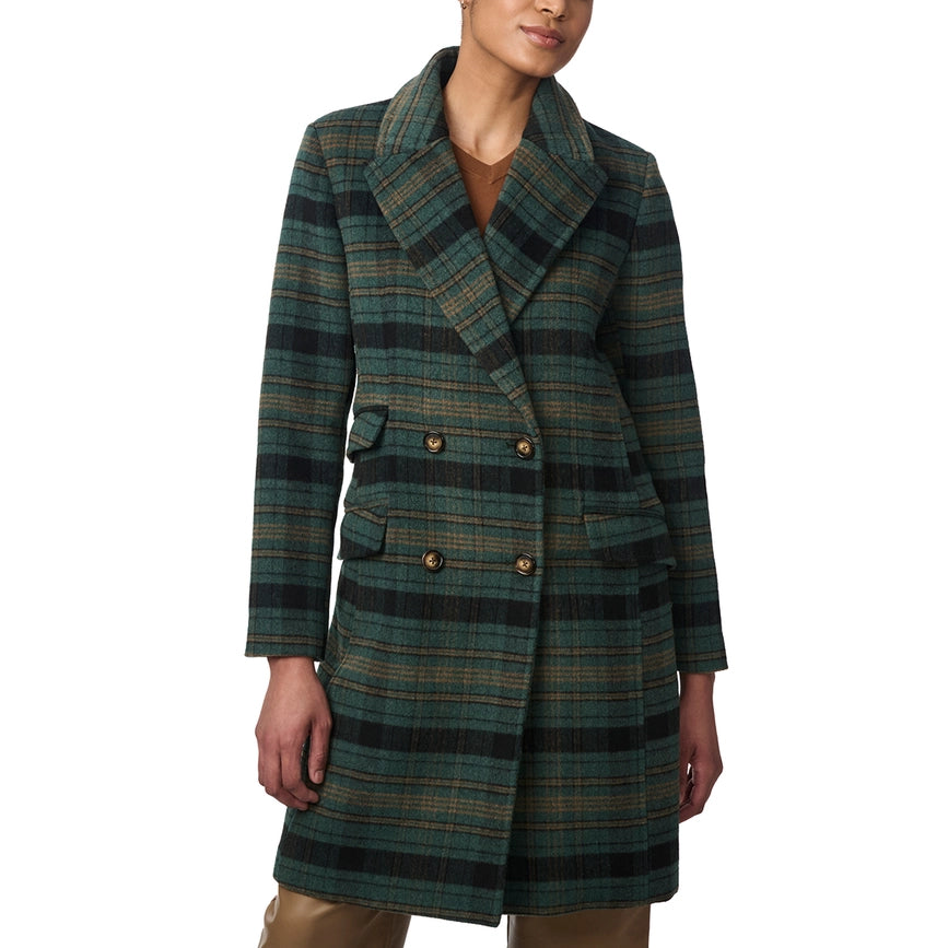 Expertly crafted with a polyester and wool blend, our Plaid Wool Coat offers a sleek and structured blazer style. The double breasted button closure, dart detail, and back vent provide a sophisticated touch, while the flap pockets offer convenience and functionality. Dry clean only.