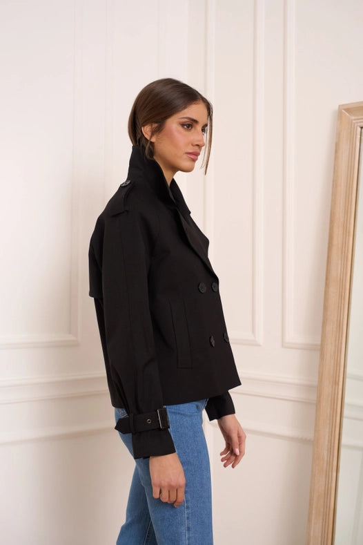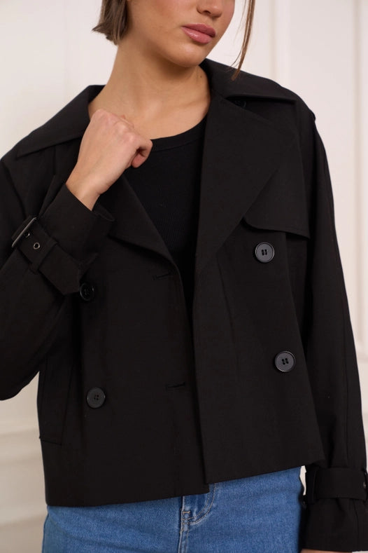 This plain cropped cotton trench coat is a timeless and versatile piece for any wardrobe. Made from 100% cotton, it offers durability and breathability. Its cropped length adds a modern twist to the classic trench coat design. Perfect for any occasion, this coat is a must-have for any fashion-forward individual.