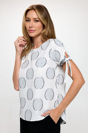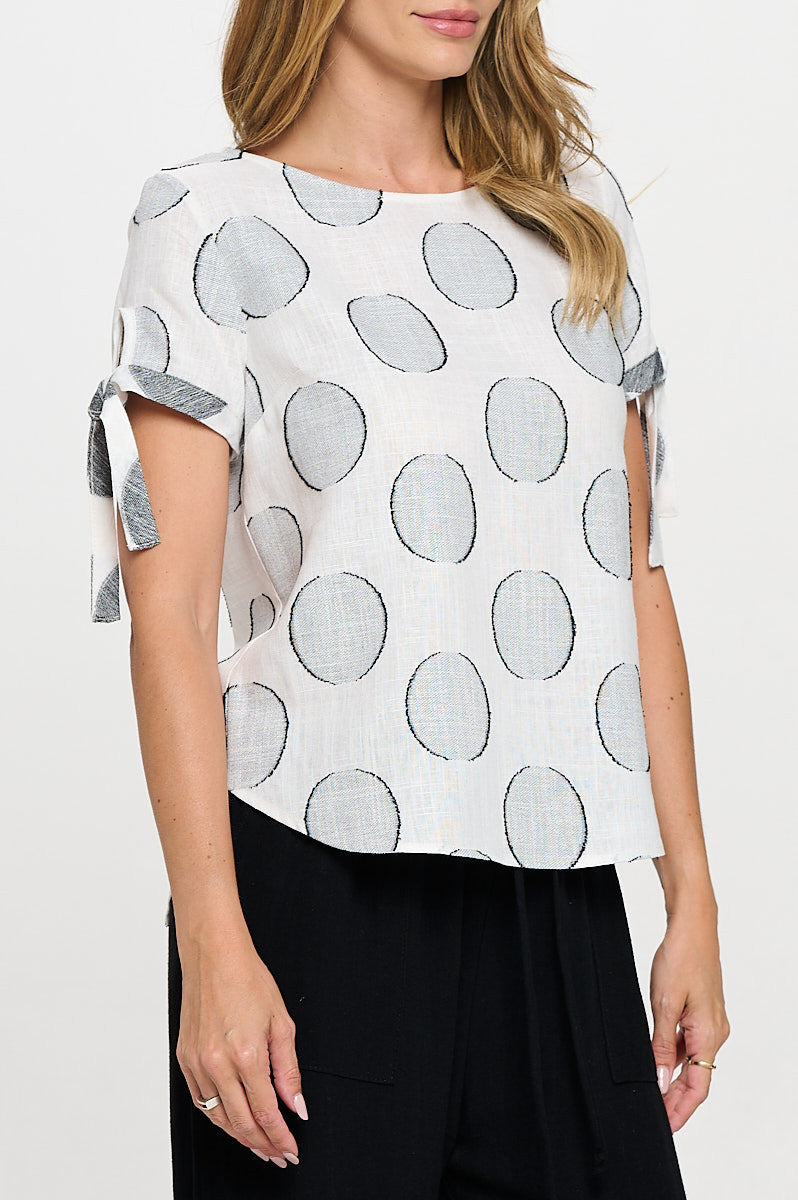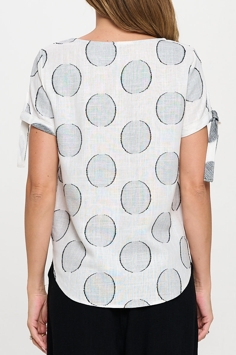 Polka Dot Short Sleeve Top with Tie Sleeve