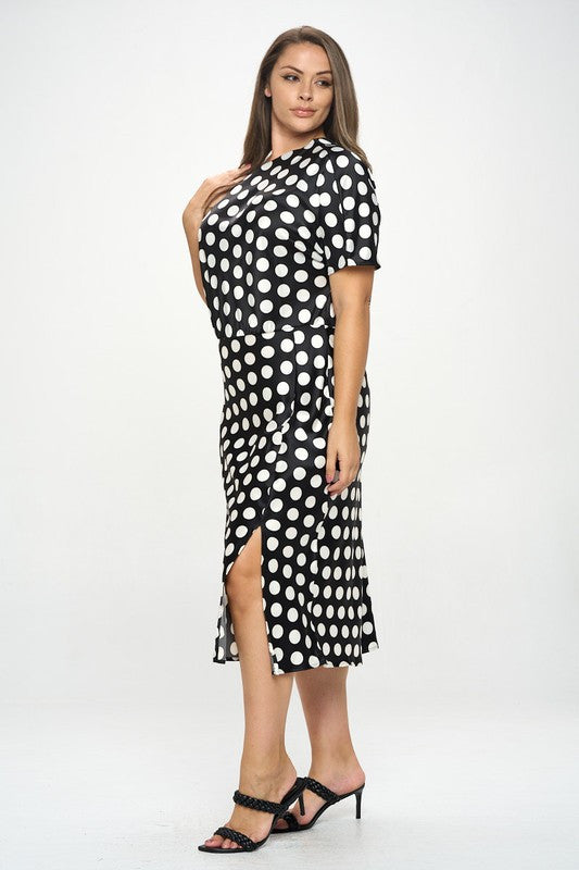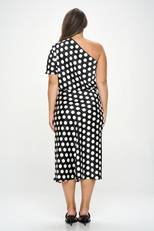 Polka Dot Stretch Satin One Shoulder Dress-New Arrival-Reneecollection-1X-BLACK-Urbanheer