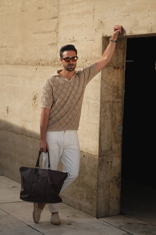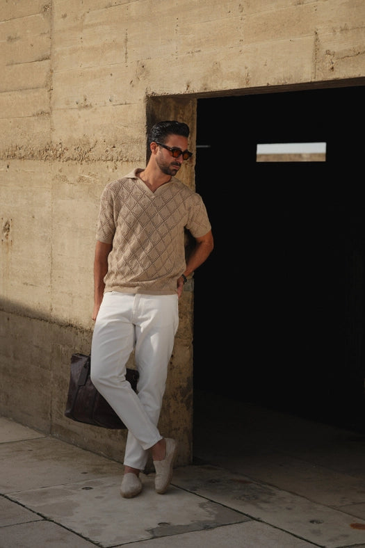 Experience unparalleled comfort and style with our Polo Geometric Design Open-Collar Taupe Shirt. Made with 100% cotton and ample stretch for a perfect fit, this shirt features a geometric design and open collar for a casual yet fashionable look. Designed in Portugal and available for free shipping with 24-hour delivery.