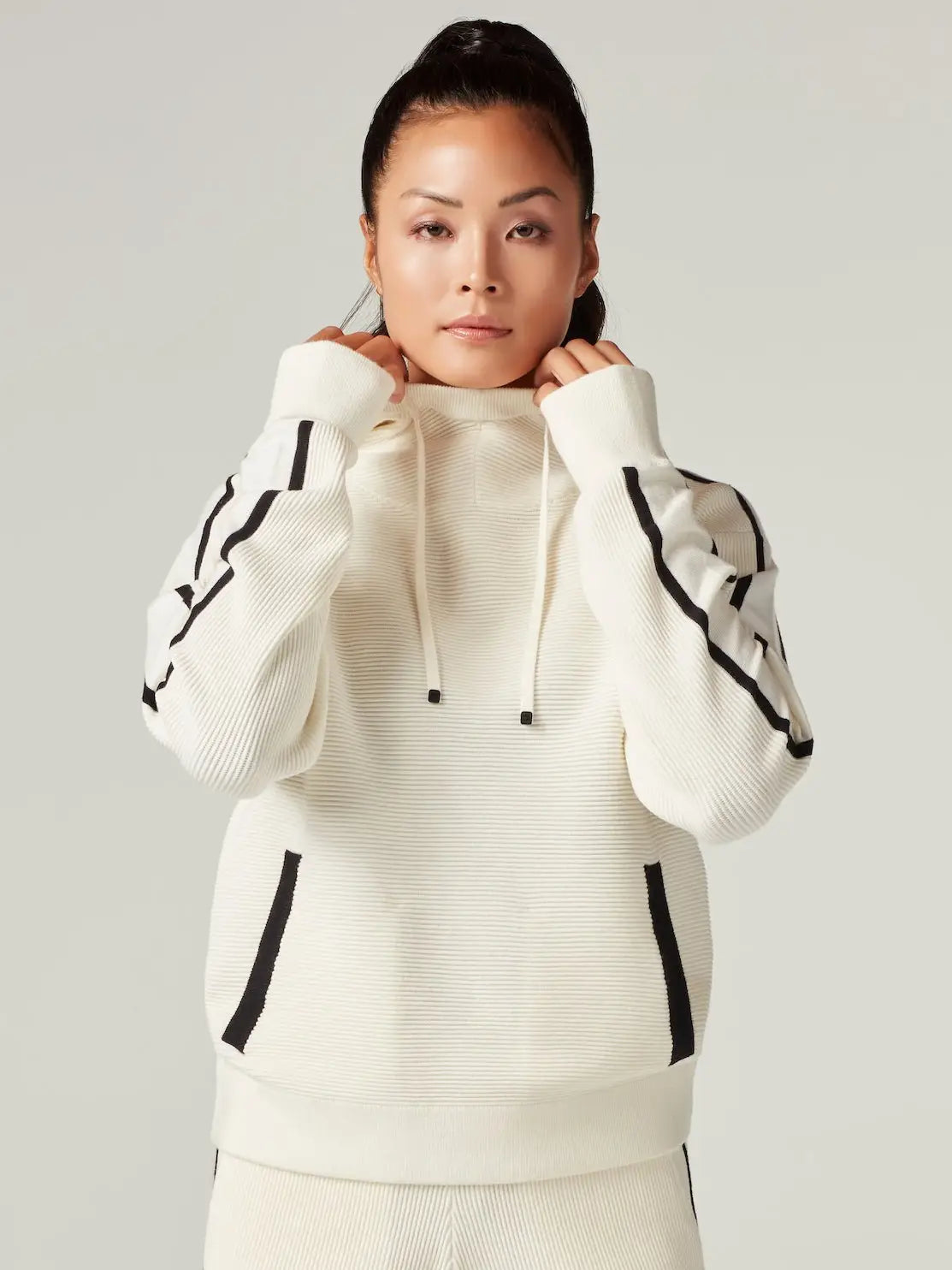 The Portola Pullover Hoodie in Whisper White blends comfort and style effortlessly. Crafted from a soft, breathable fabric blend including rayon, PBT, Tencel, acrylic, and cashmere, it offers warmth without bulk. Thoughtful features like thumbholes, a drawcord hood, and functional pockets enhance usability and fit. With a 23.5" center back length, it pairs seamlessly with the Portola Short or Jogger for a coordinated look. Ideal for layering or wearing alone, this hoodie delivers expert-level comfort and versatility.