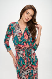 Print V neck Jersey Wrap Maxi Dress with Tie