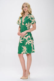 Print V neck Kimono Dress