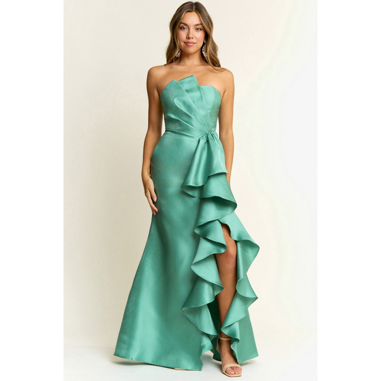 From a contemporary body size, this straight neckline tube sleeveless mermaid maxi dress is ready for any special occasion. Made with 100% polyester, it offers a comfortable and stylish fit. Perfect for prom, bridesmaids, bridal events, or homecoming.
