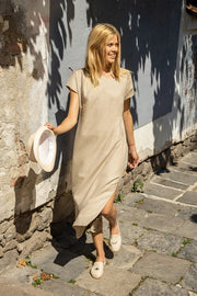 Mallorca Maxi Linen Dress with A Side Slit