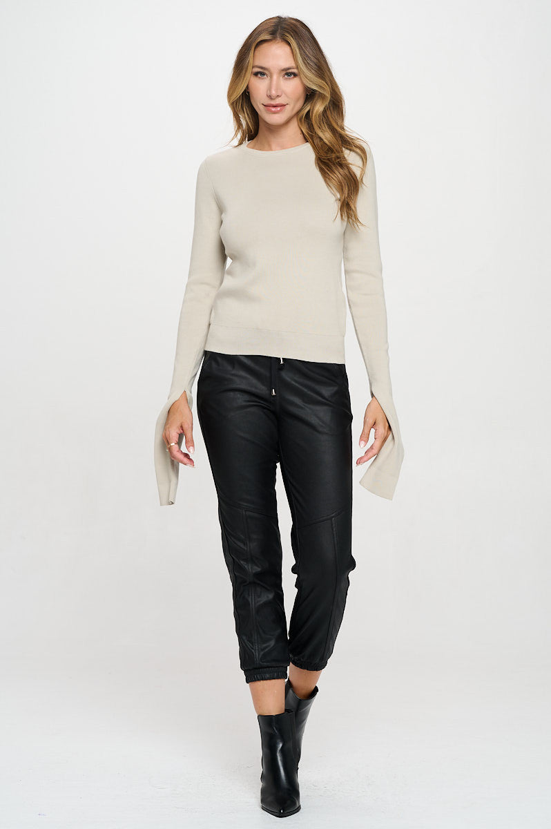 Rib Knit Round neck Sweater with Open Long Sleeve