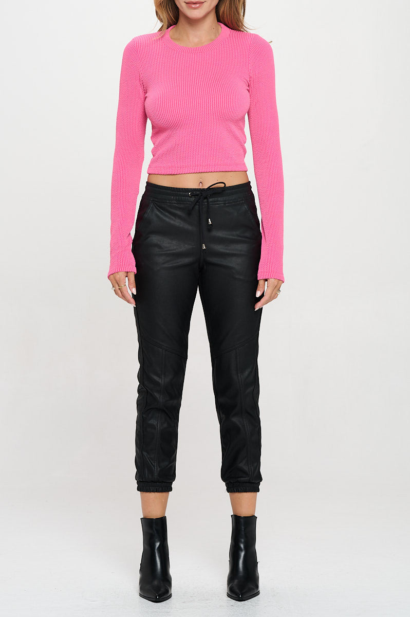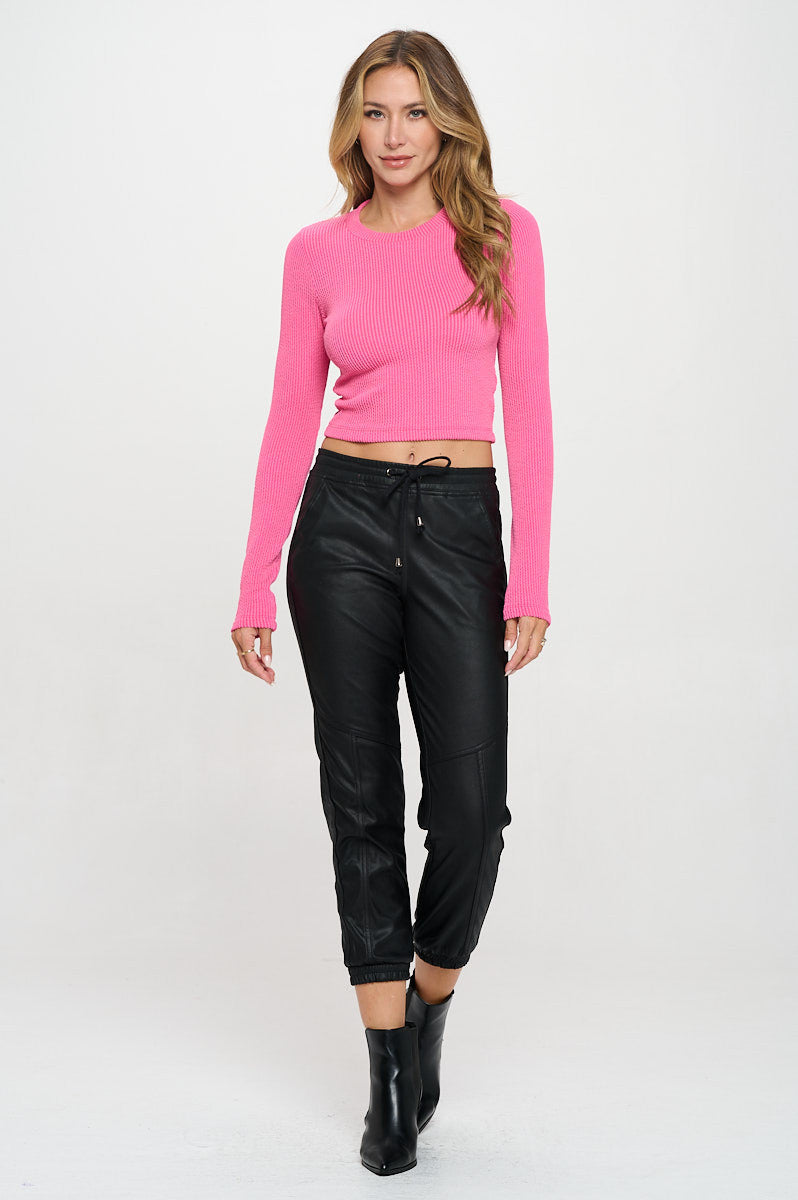 Made in USA Ribbed Round neck Long Sleeve Crop Top.