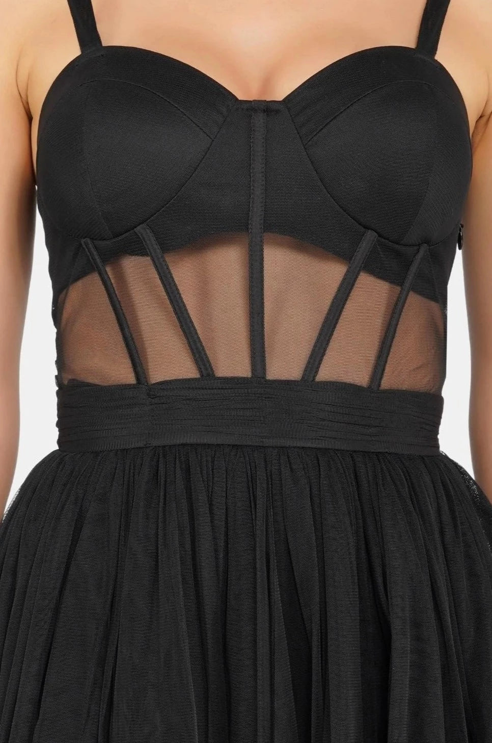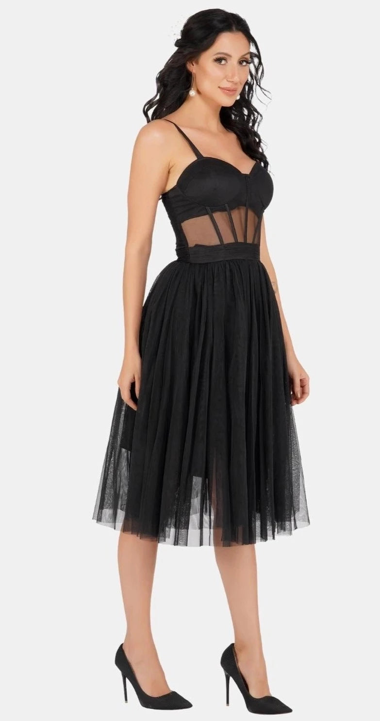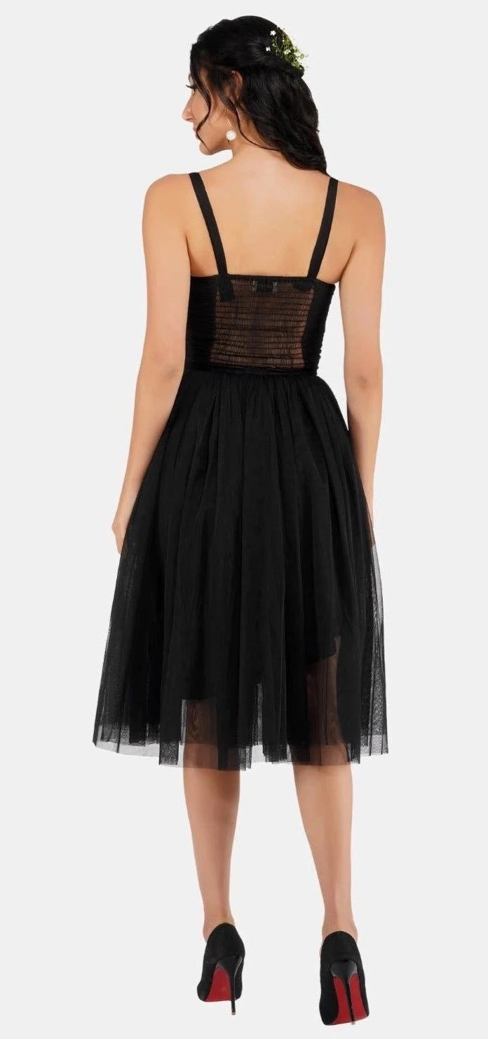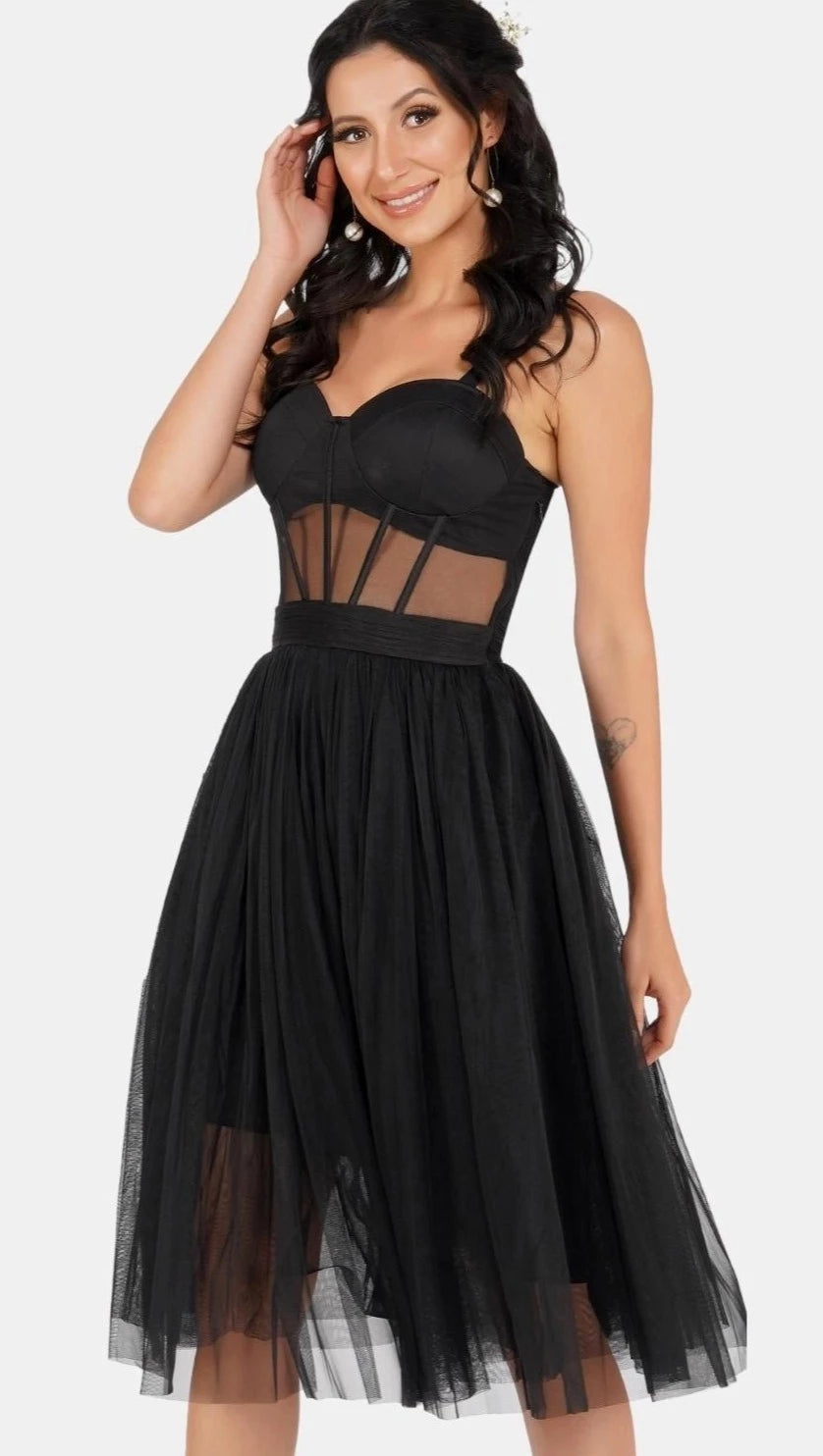 Rita Corset Tulle Midi Dress In Black.
