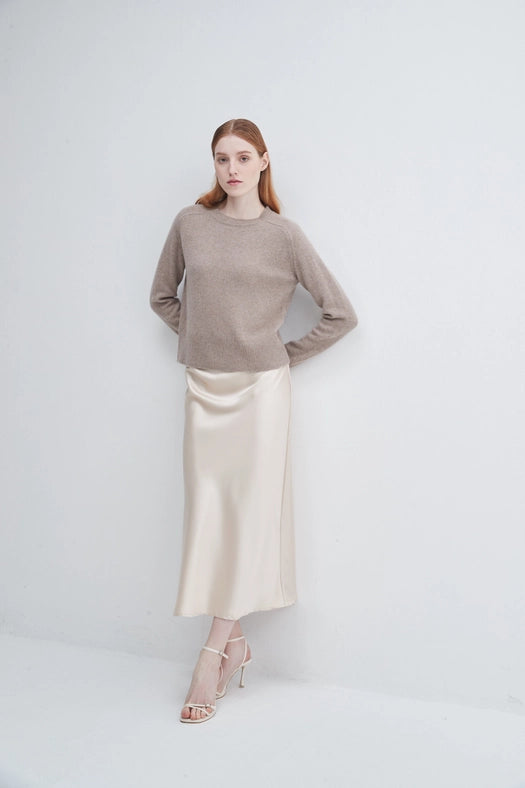 Elevate your style with our Saddle Sleeve Crewneck Cashmere Sweater. Made from premium pure cashmere, this luxurious sweater features a loose fit with long sleeves and a unique saddle sleeve design. The long cuffs and extended hem add a refined touch to your ensemble. Hand wash or dry clean for best care.