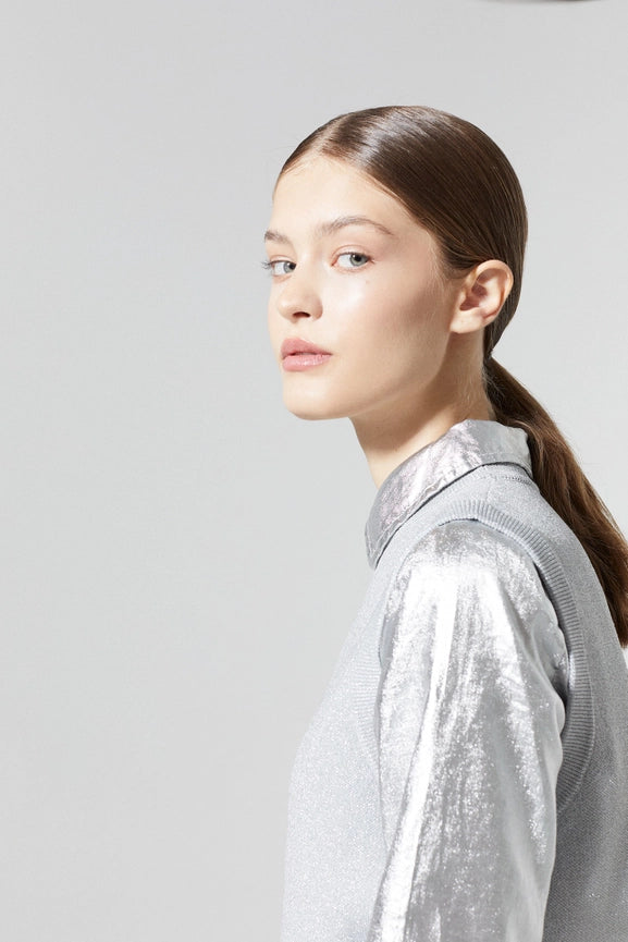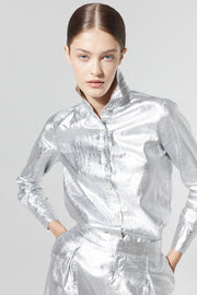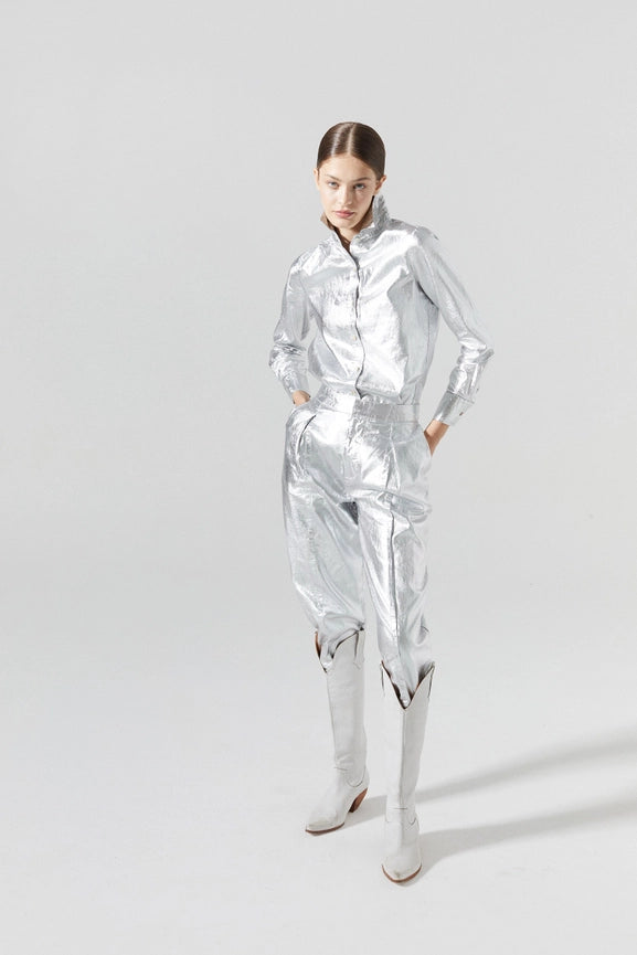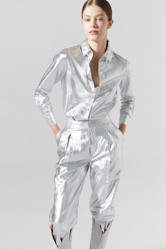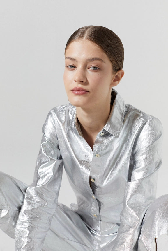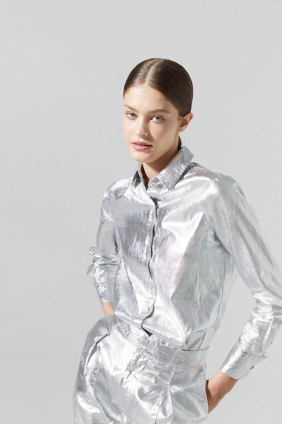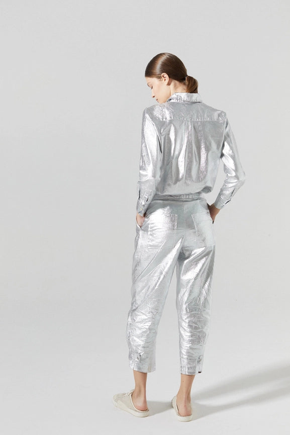 Elevate your wardrobe with our San Marino metallic linen shirt. Made with 100% organic linen, the foil print adds a touch of glamour. The curved hemline creates a flattering silhouette, and the fade-out wash gives it an aged appearance. Pair with caution due to potential variations in color.ч