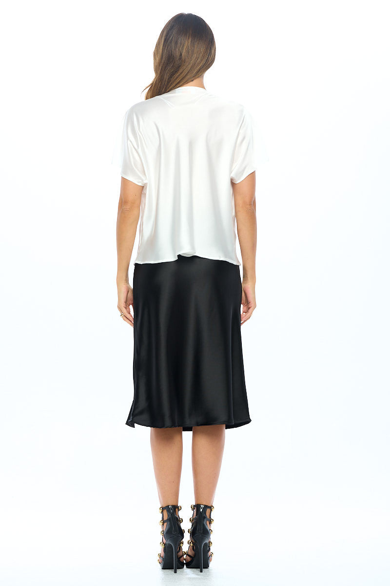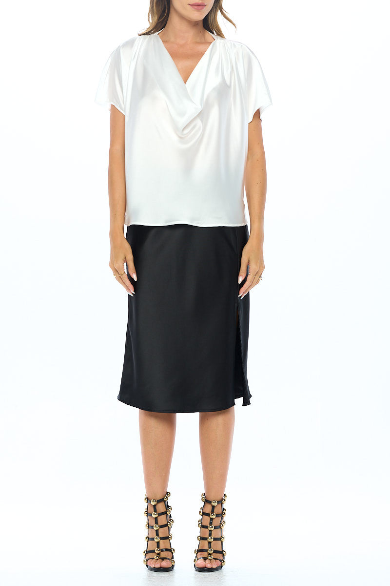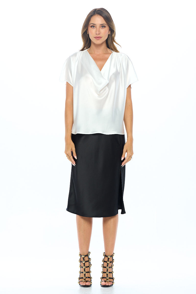 Satin Cowl Neck Short Sleeve Top-Tops-Reneecollection-Small-IVORY-Urbanheer
