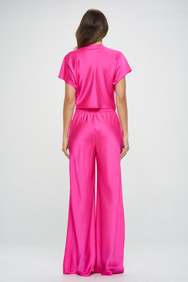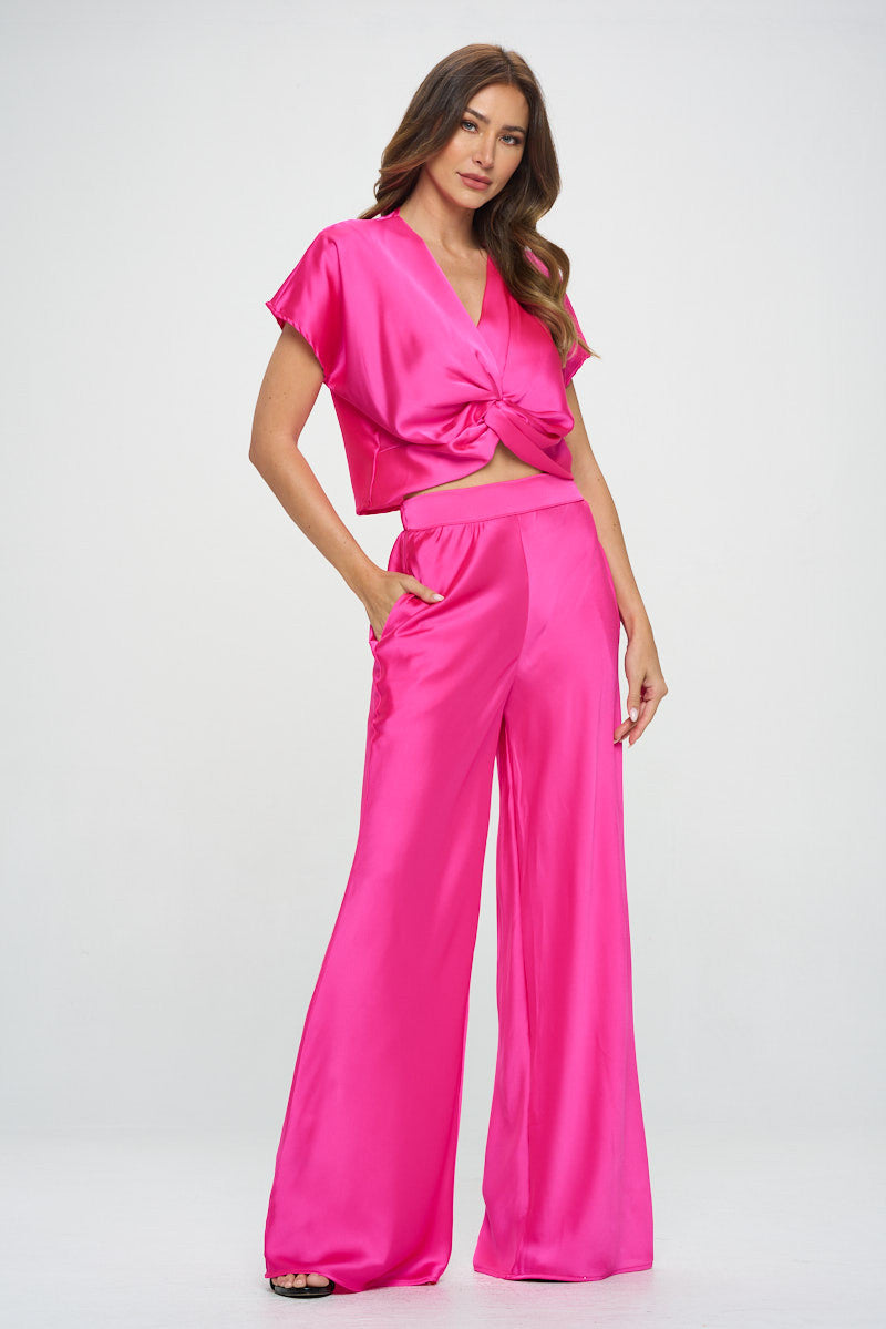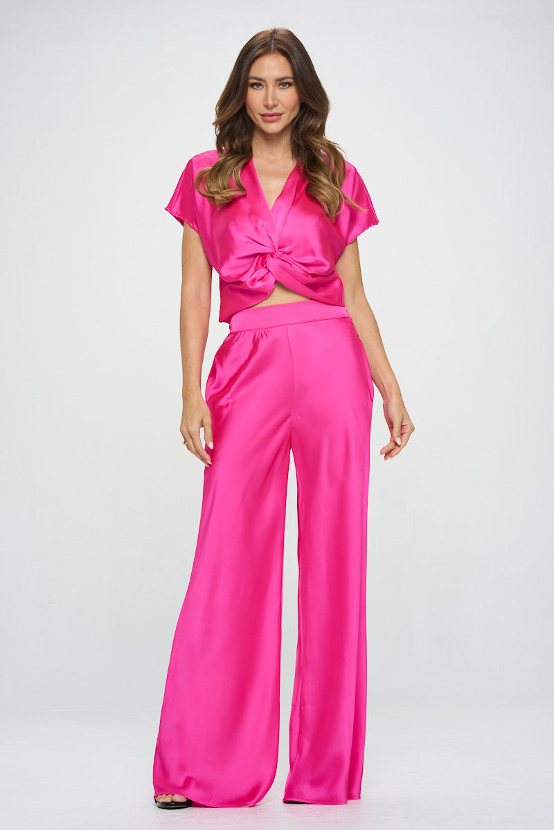 Satin Short Sleeve Top with Front Twist-New Arrival-Reneecollection-Small-FUSCHIA-Urbanheer