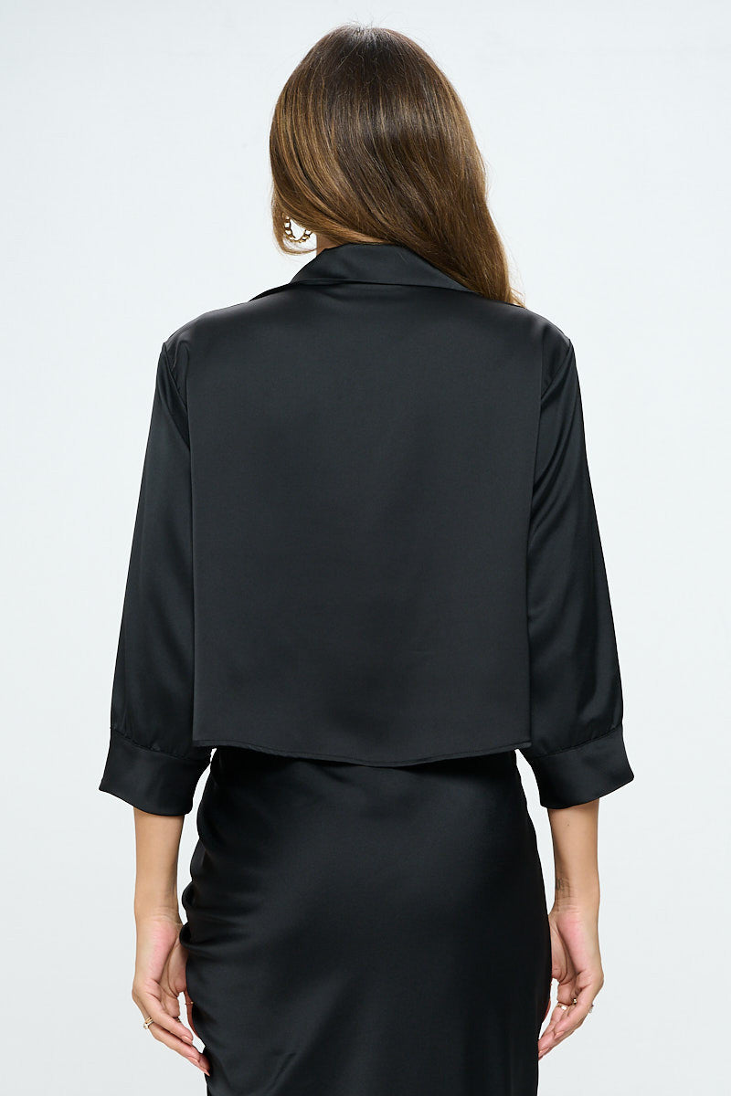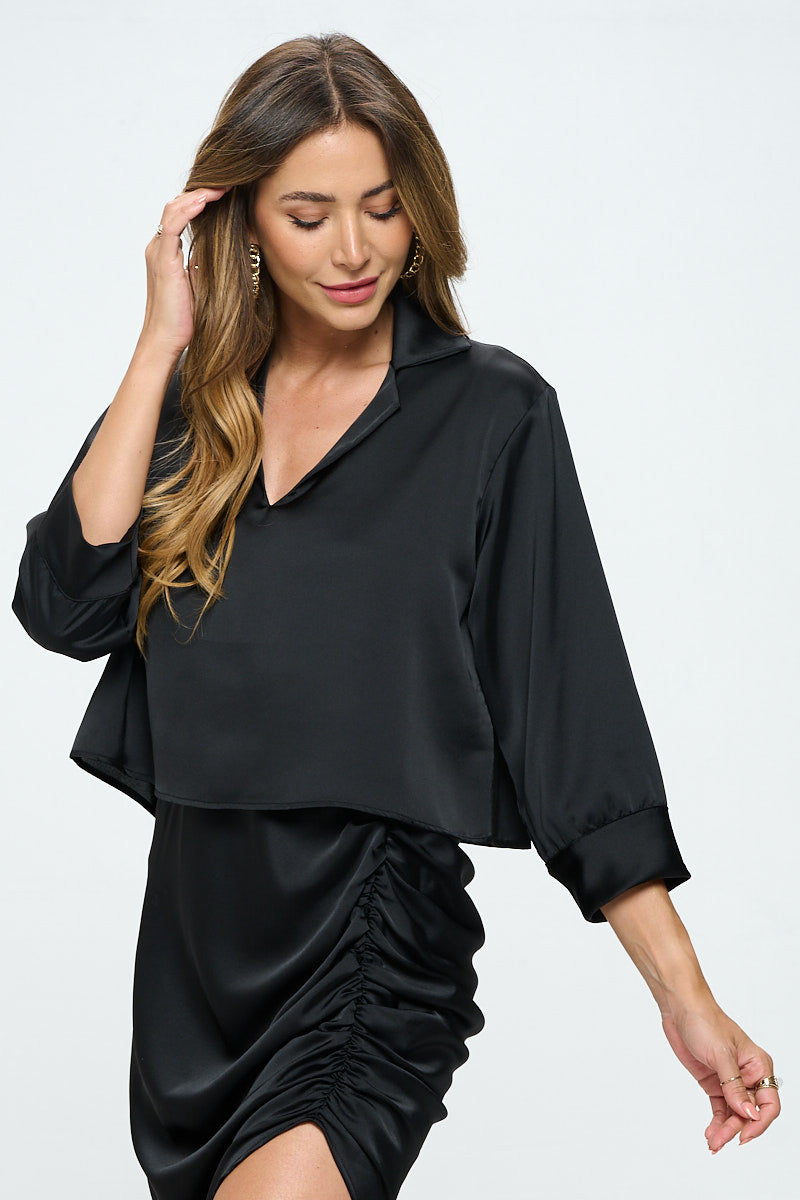 Satin V neck Collared Crop Top-Tops-Reneecollection-Small-BLACK-Urbanheer