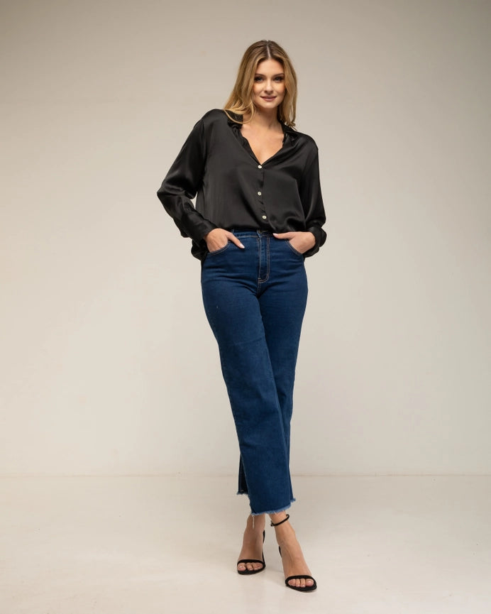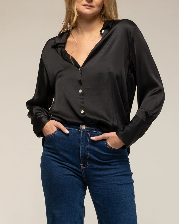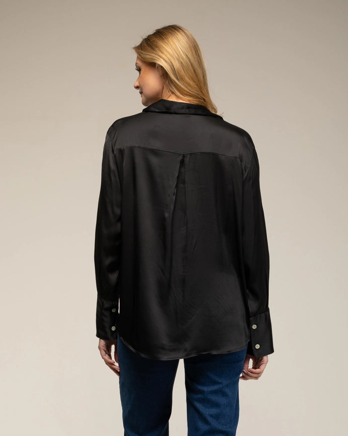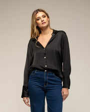 Shirt with Button Closure Silk, Wide Cuffs BLACK