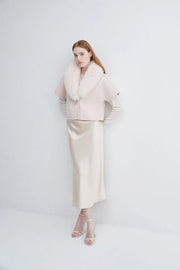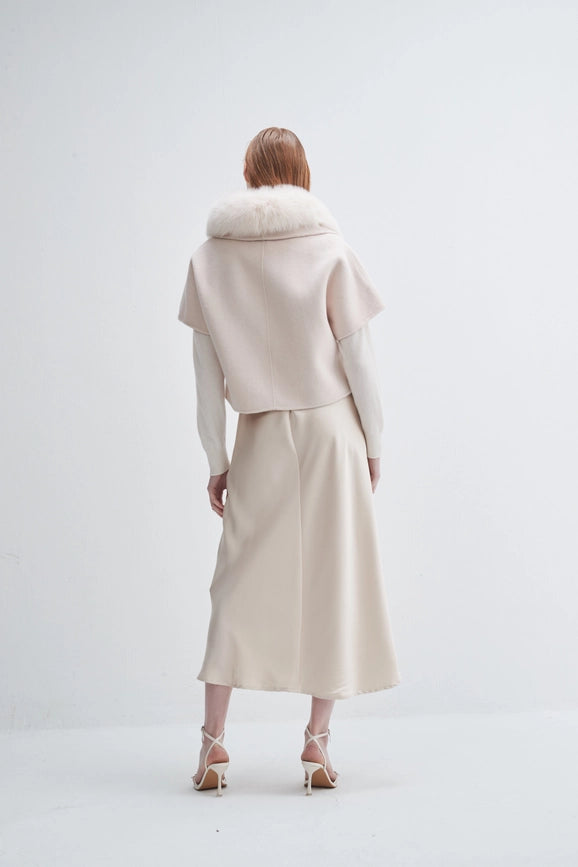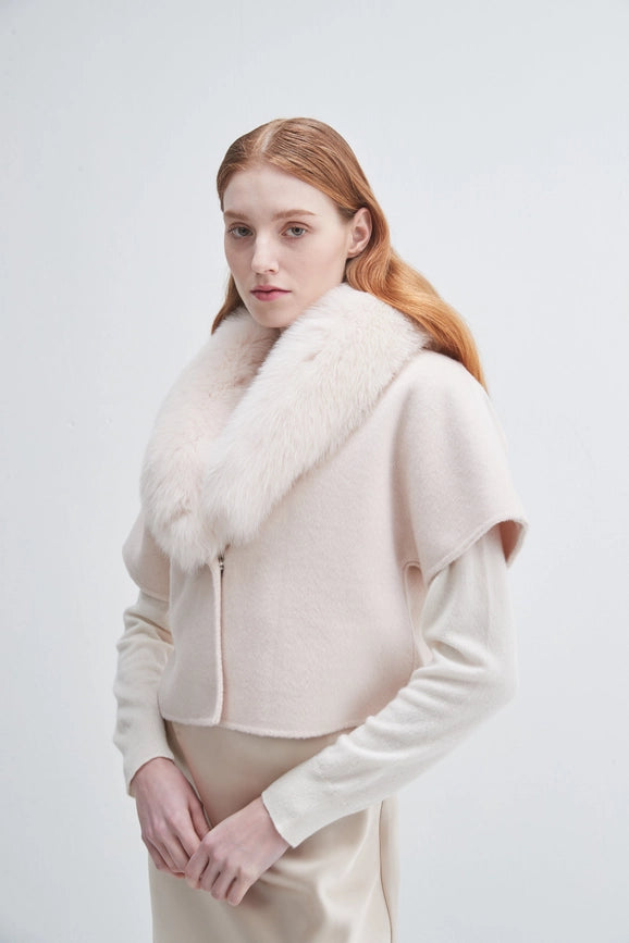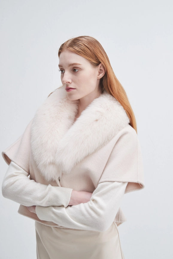 Expertly tailored with a clean silhouette, this short-sleeve jacket made from 80% virgin wool and 20% cashmere is both versatile and polished. The detachable fur collar adds a touch of glamour, making it perfect for both casual and formal occasions. Professional dry clean only.