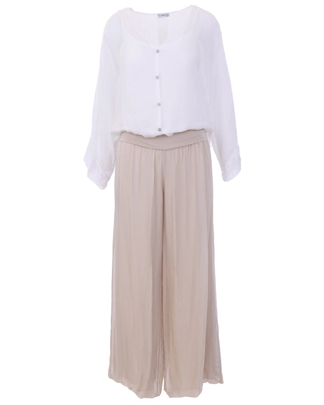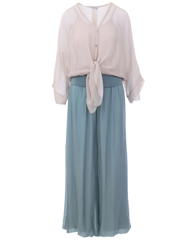 These Silk Blend Hareem Pants are a perfect mix of comfort and style. The soft and flowing fabric, lined with viscose jersey, provides a chic and sophisticated look. The extra wide waistband offers versatility in wear, while the shell's intricate design adds a touch of Boho charm. Made in Italy with 80% viscose and 20% silk outer shell and 100% viscose lining. One size fits UK size 10-16.