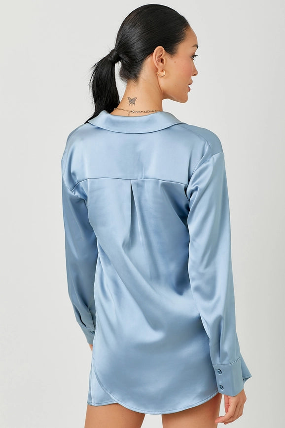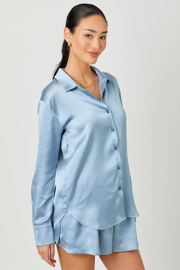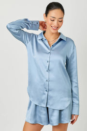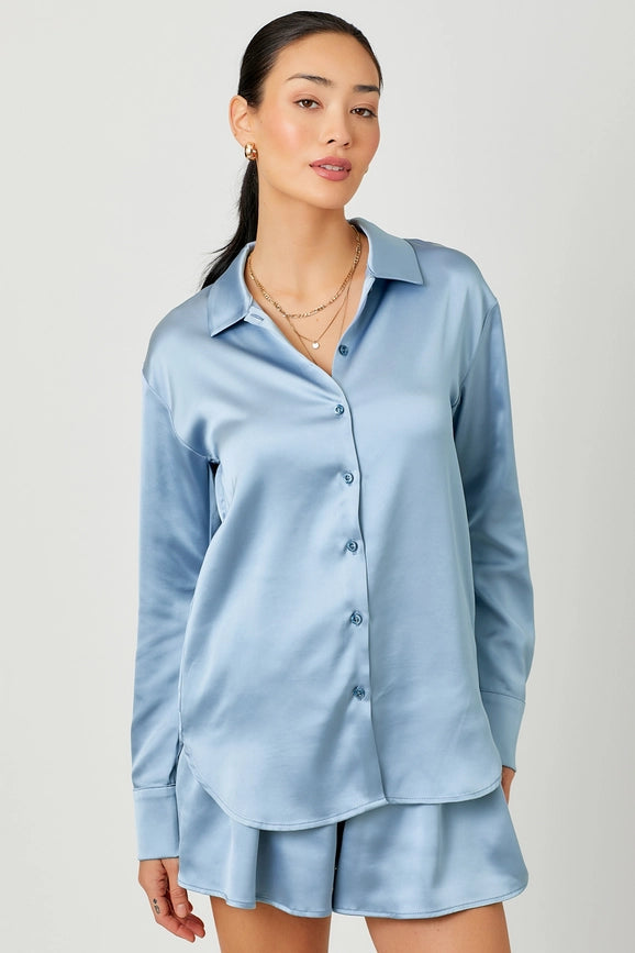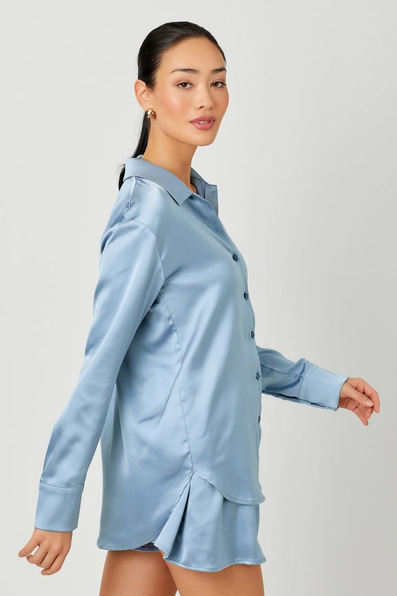 Introducing the Silky Relaxed Shirt, a must-have for any wardrobe. With its button down design and silky fabric, this shirt offers both elegance and comfort. The collared neckline adds a touch of sophistication, while the hi-lo hem provides a modern twist. Upgrade your style with this versatile and stylish shirt.