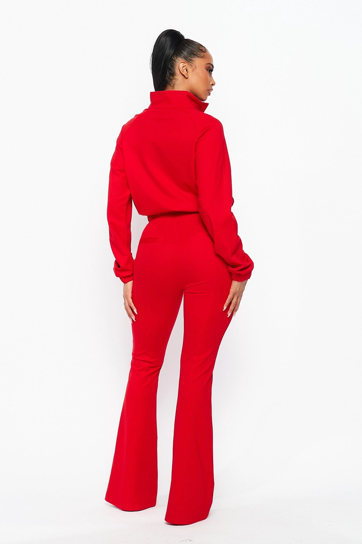 Simple Day Knit Track Jacket and Flare Pants Set | Red
