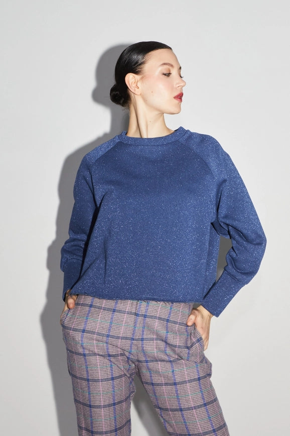 Sofia Jersey Lurex Blue Sweatshirt