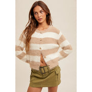 Soft Eyelash Yarn Stripe Crop Cardigan TPE/WHT