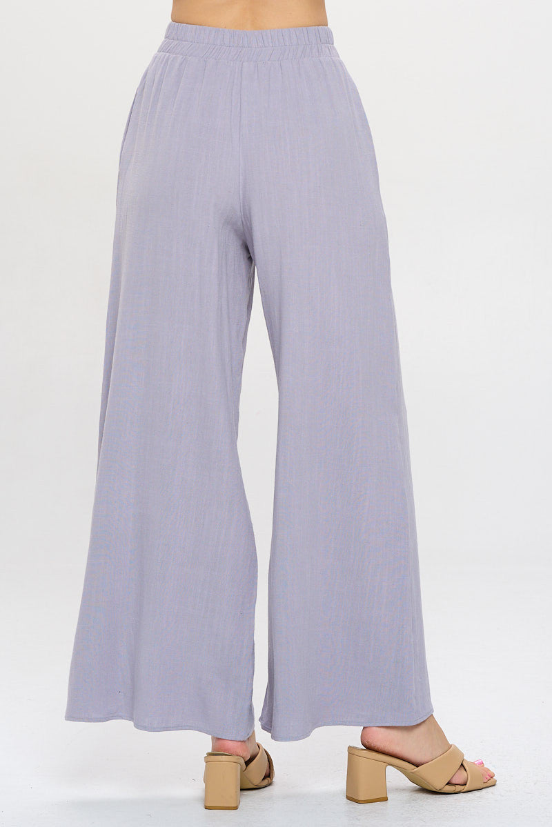 Solid Linen Wide Leg Pants with Pockets
