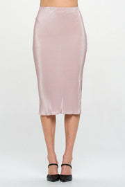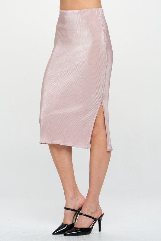 Made in USA Solid Plisse Midi Skirt with Slit and Elastic Waistband. Available in other Colors.