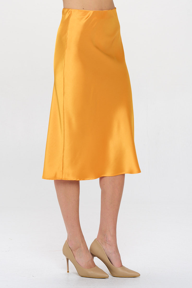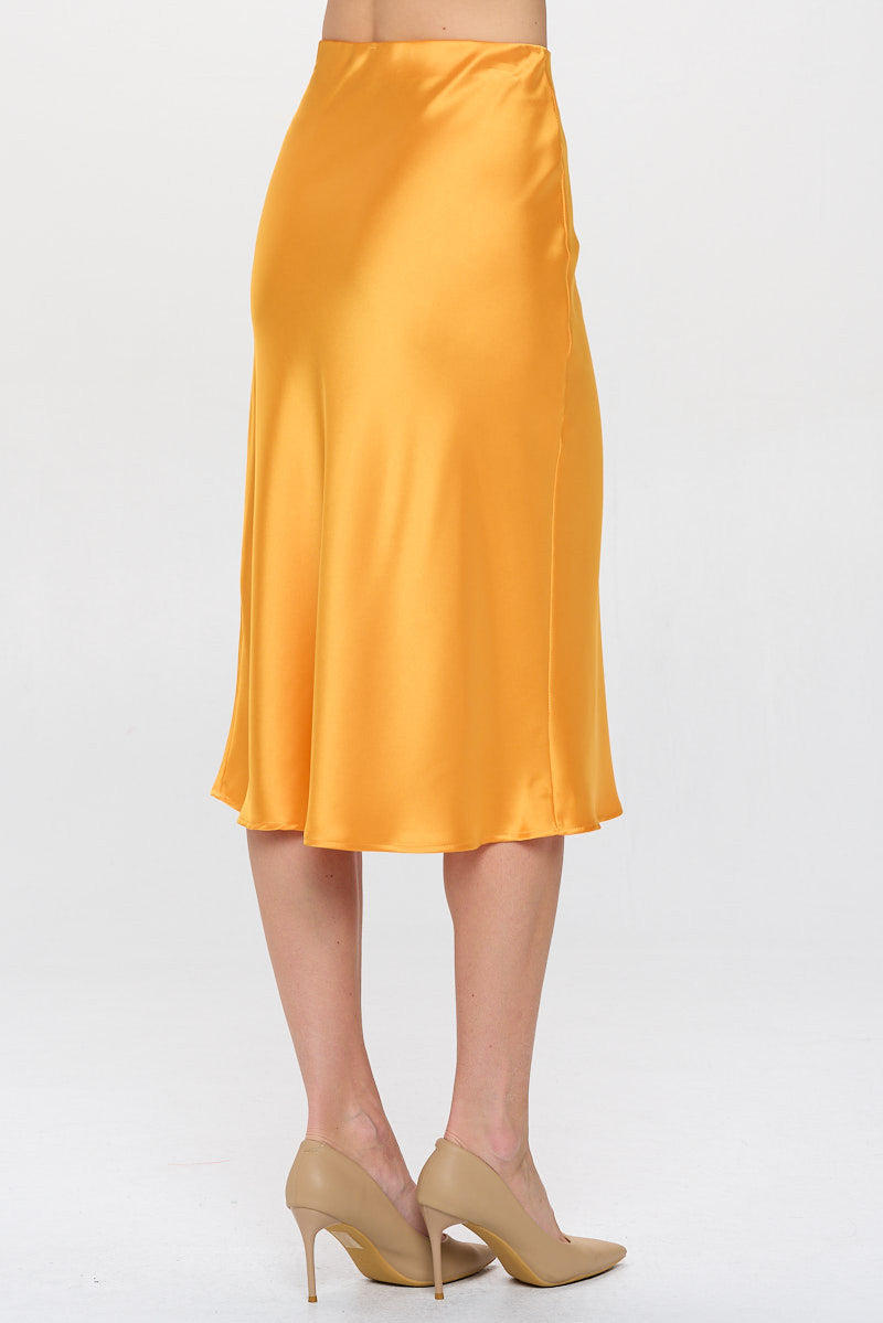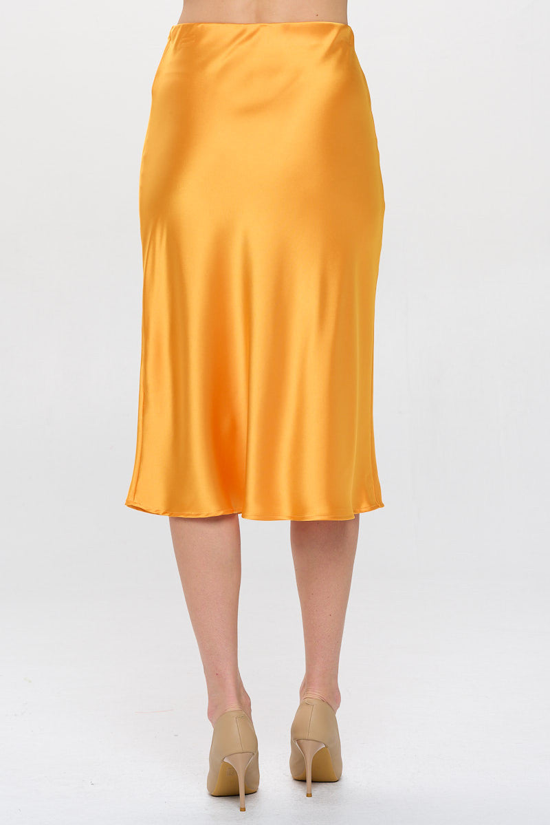 Made in USA Solid Satin Midi Skirt. Fabric content: 97% Polyester, 3% Spandex. Available in other Colors.