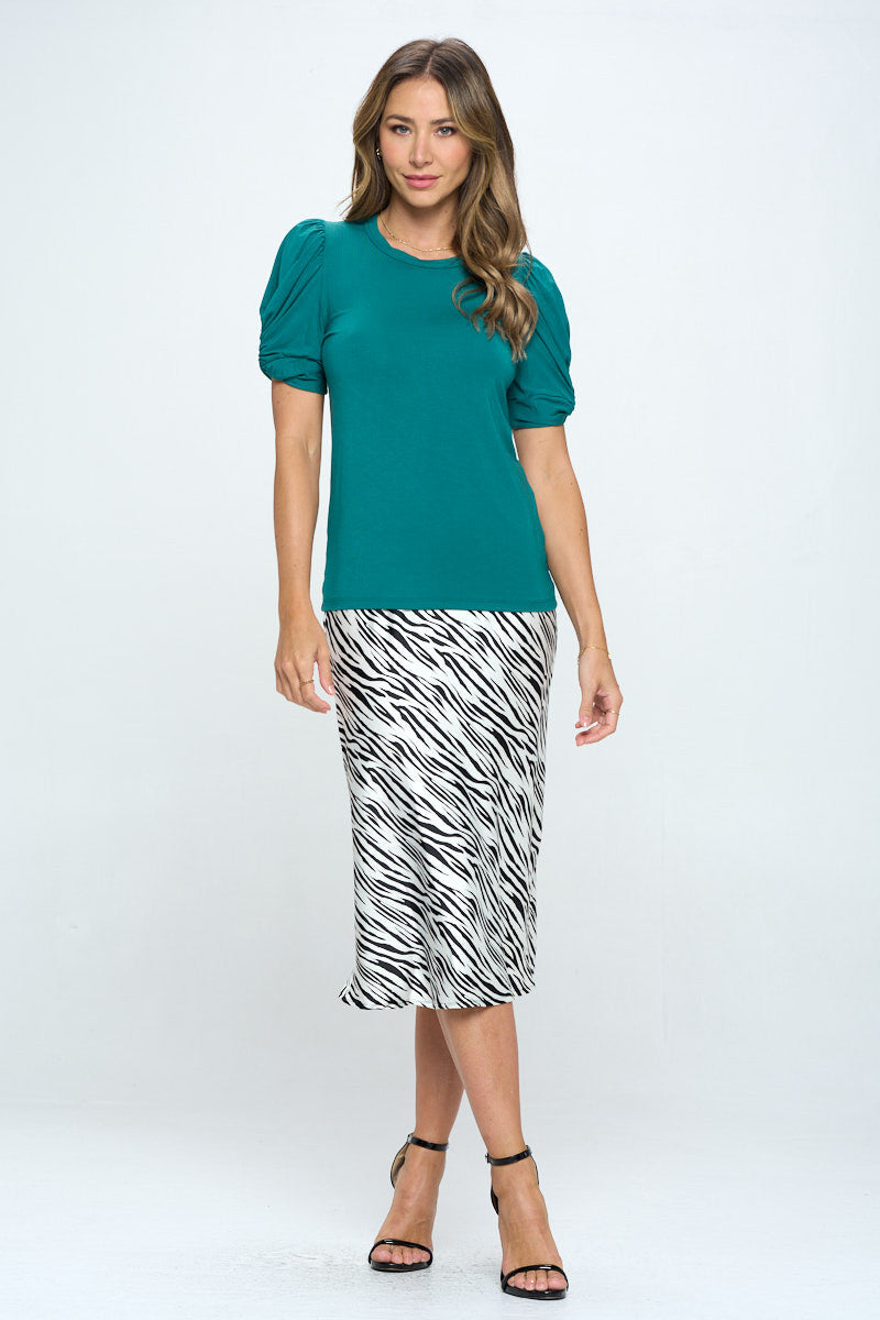 Solid Short Sleeve Top with Scrunched Sleeves-Tops-Reneecollection-Urbanheer