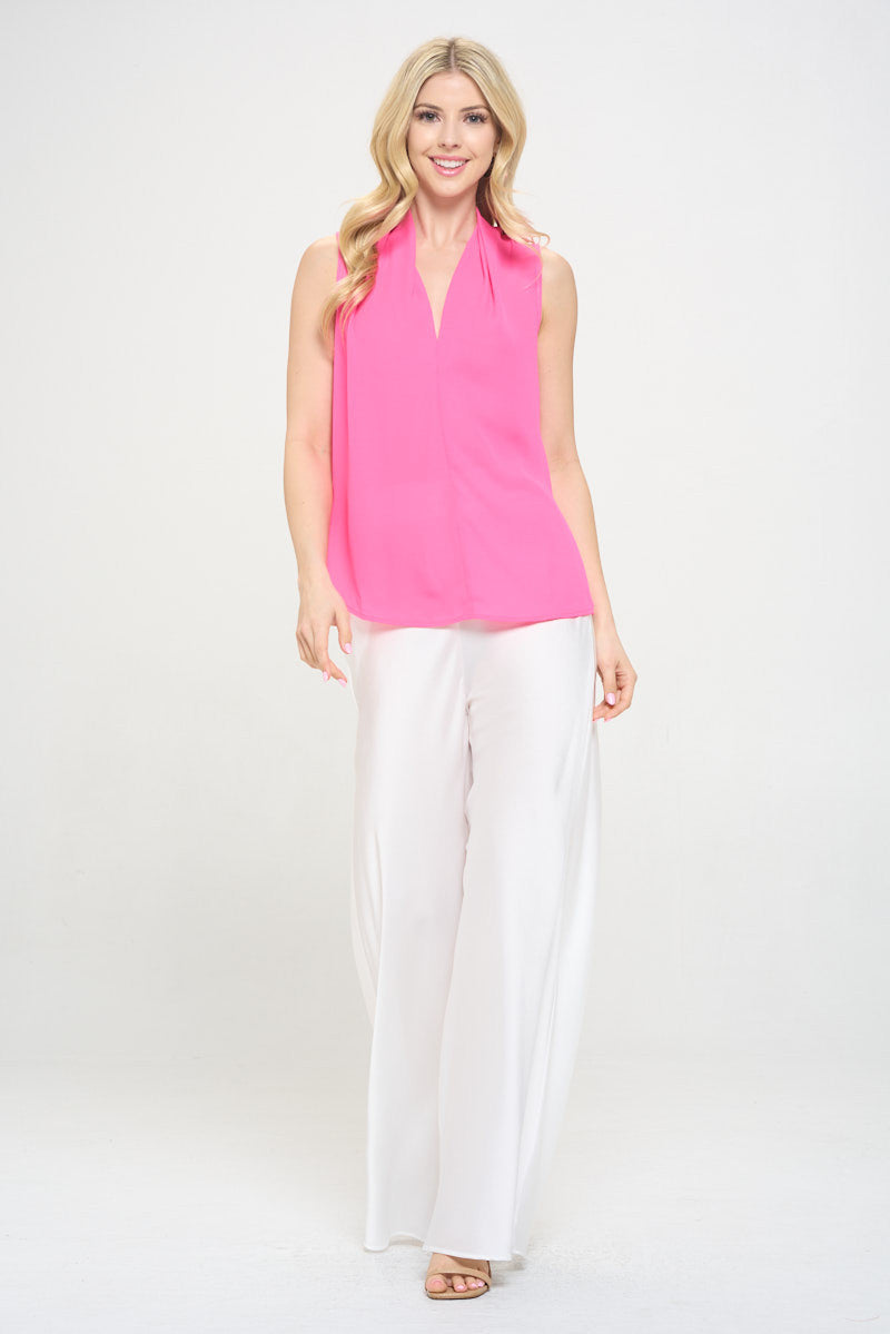 Solid V neck Top with Drape Neckline-New Arrival-Reneecollection-Small-FUSCHIA-Urbanheer