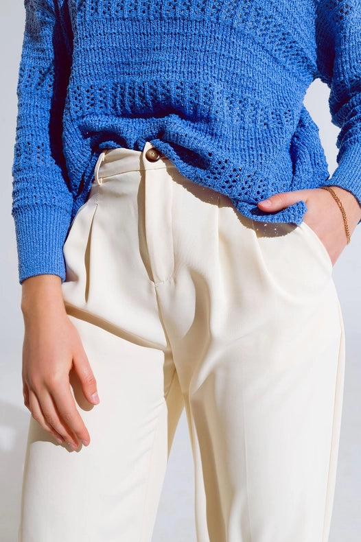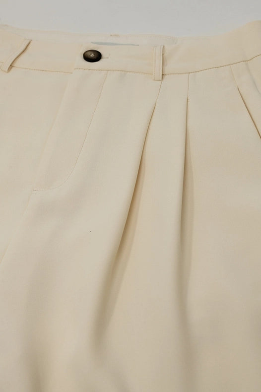 Straight Leg Trousers With Side Pockets And Darts In Cream