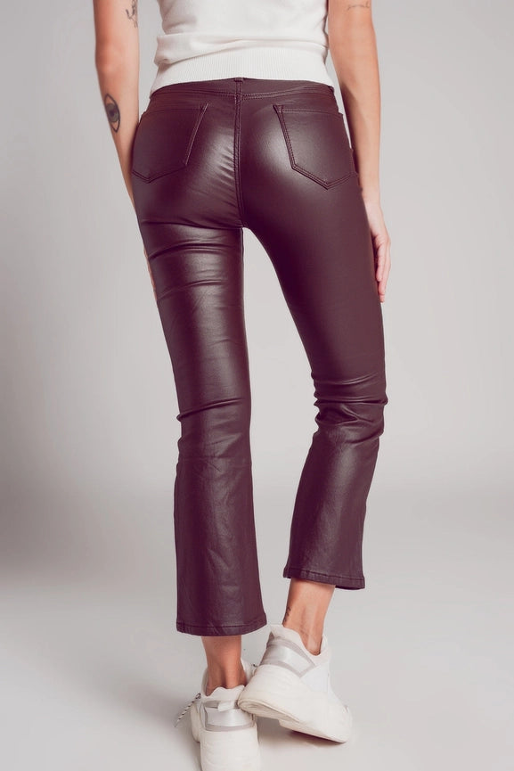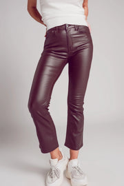 Stretch Faux Leather Flare Pants in Brown-Pants-Q2-XS-Brown-Urbanheer