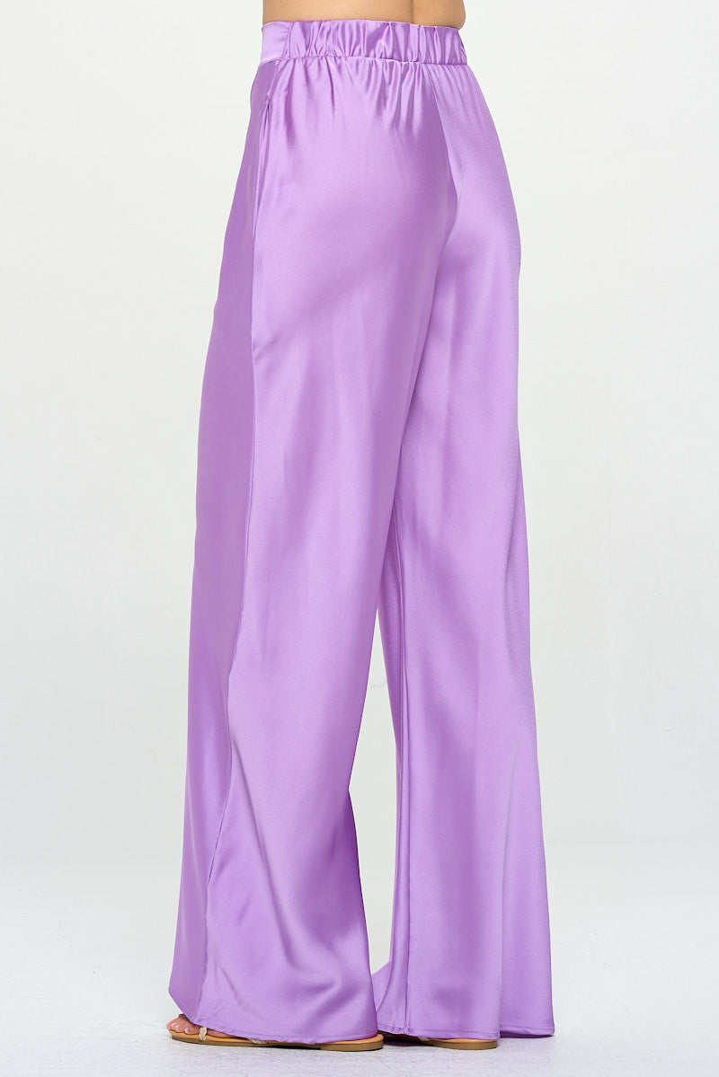 Stretch Satin Pants w/ Elastic Waist and Pockets