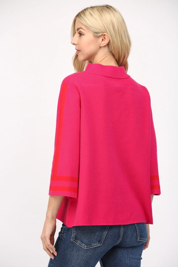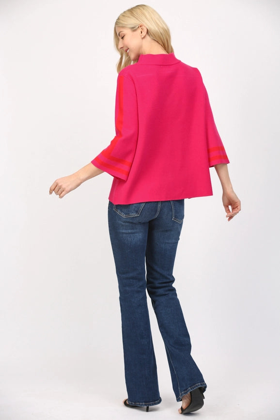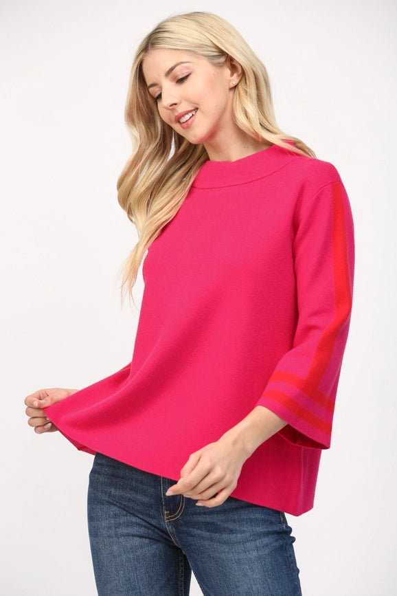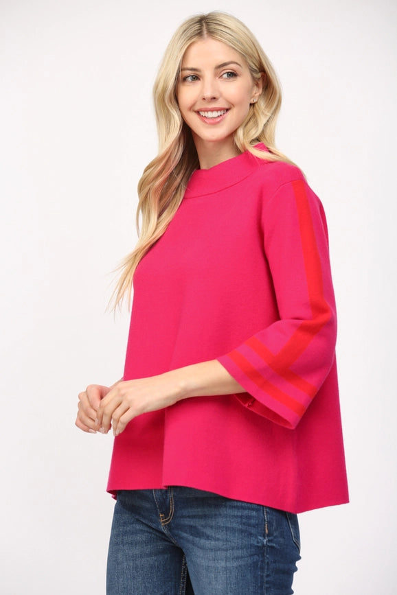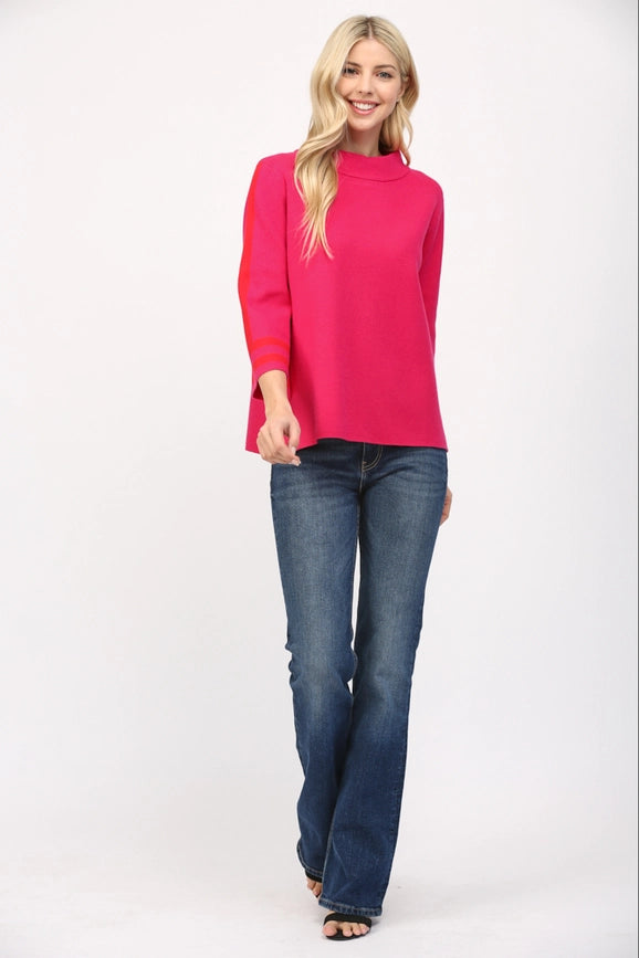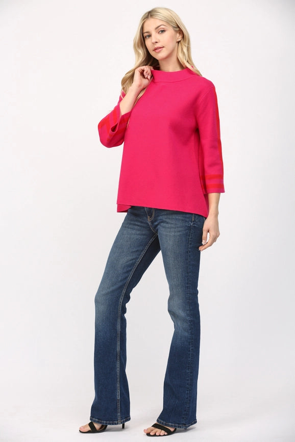 Introducing our Stripe Mock Neck Sweater. Made with 55% viscose and 45% nylon, this sweater offers both comfort and style. The mock neck design adds a touch of sophistication while the stripes add a modern flair. Stay cozy and effortlessly chic with this must-have piece in your wardrobe.