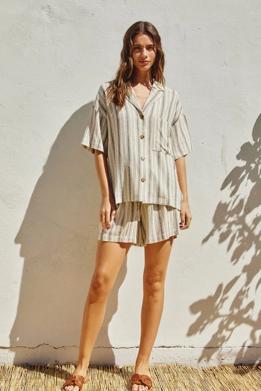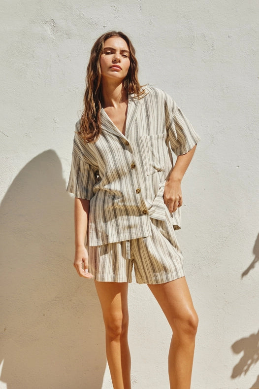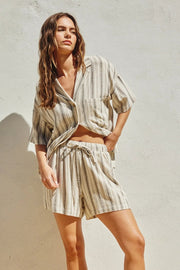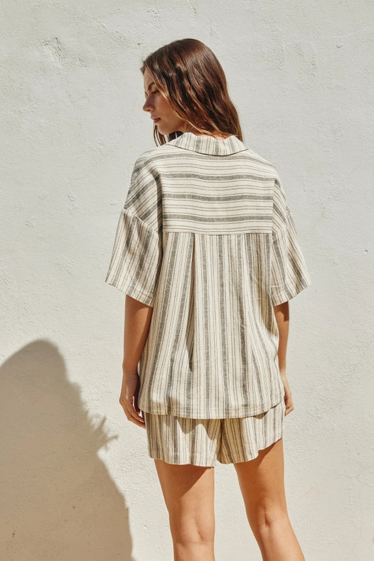 Striped Linen Blend Relaxed Shirt and Shorts Set