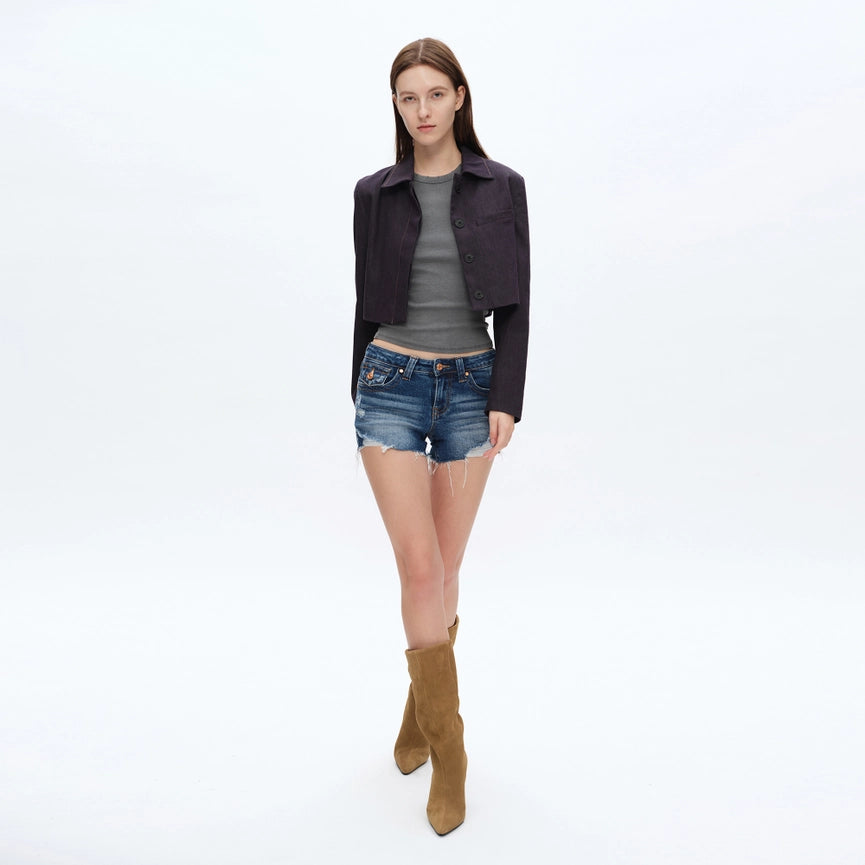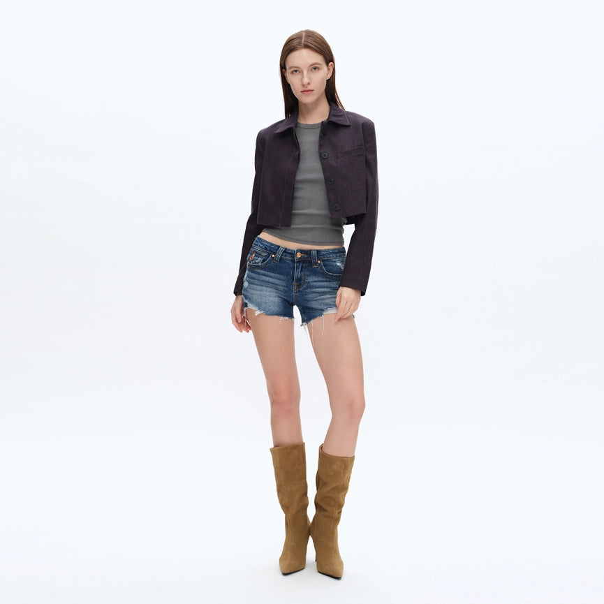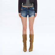Super Low Rise Denim Shorts with Frayed Hem DARK BLUE