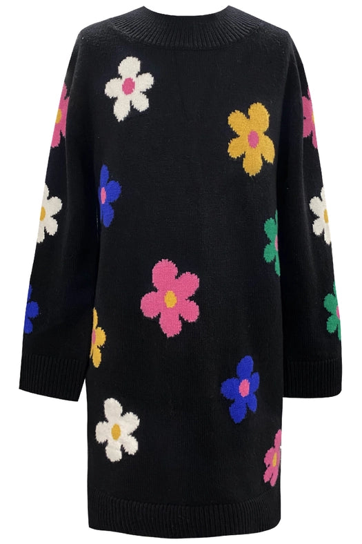 Sweater Dress with Colorful Flowers