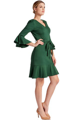 Tayte Dress - V-neck 3/4 sleeve dress with ruffle accents and self